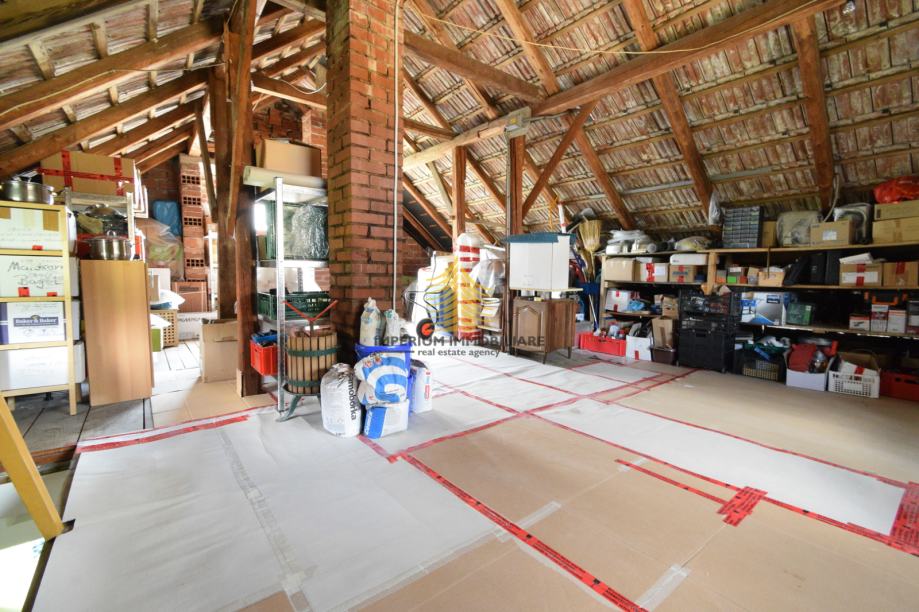 Kuća se sastoji od 2 odvojena stana, tavana i podruma.
