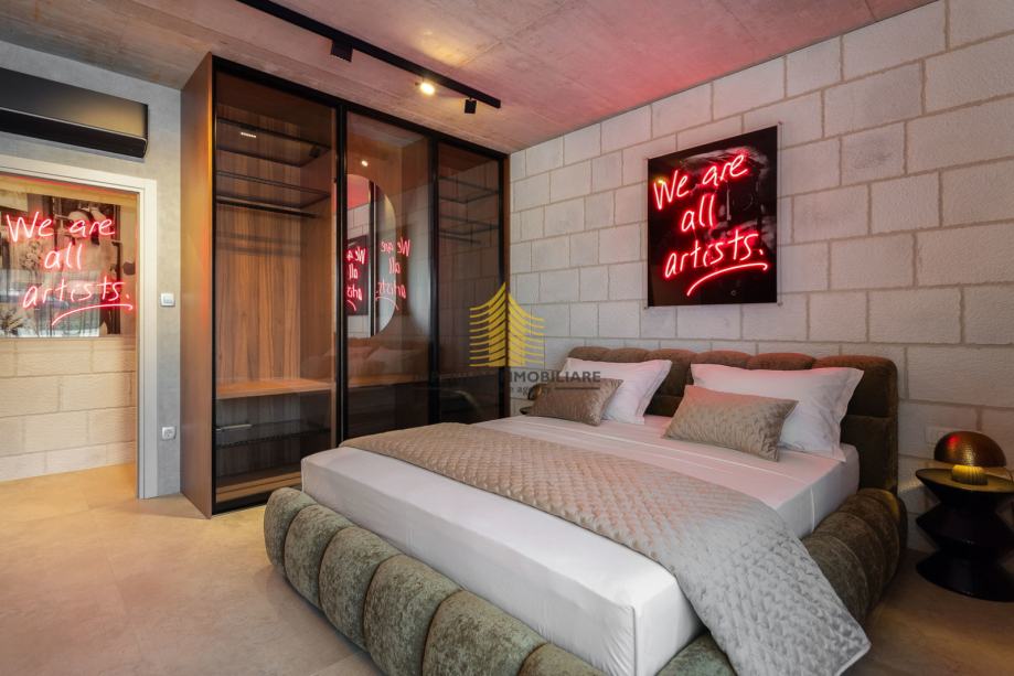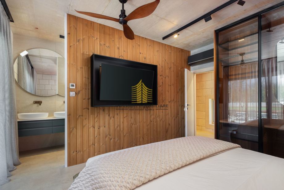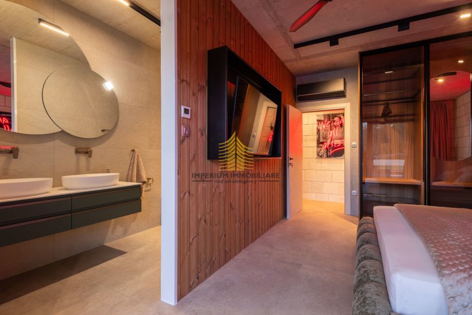 4 luksuzne spavaće sobe, svaka sa vlastitom kupaonicom (walk-in tuš + WC), individualnom klimom, ventilatorom i TV-om. Sve sobe imaju podno grijanje s regulacijom po prostoriji.