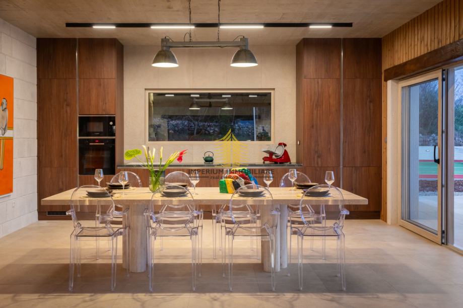 ️ Prostrani open-space dnevni boravak i kuhinja, opremljeni s dvije Panasonic Eterea klima jedinice (5,5 kW), dizajnerskim detaljima i velikim kliznim stijenama Gelan koje brišu granicu između interijera i eksterijera.