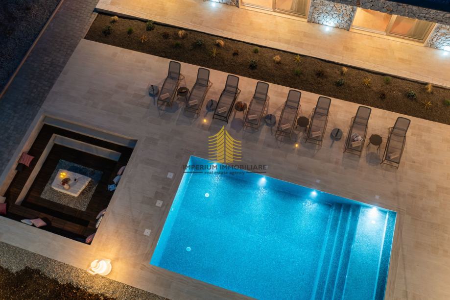 Predstavljamo vam izuzetnu nekretninu koja redefinira pojam luksuza, stila i privatnosti. Smještena na parceli ukupne površine 2.963 m2, ova kamena vila bruto površine cca 240 m2 nudi savršenu harmoniju modernog života i prirodnog okruženja.