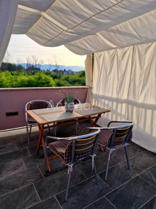 U prizemlju se nalazi apartman površine 40 m2 koji se sastoji od kuhinje, dnevnog boravka, kupaonice i spavaće sobe, te prostrane terase, na katu se nalazi apartman površine 40 m2 koji se sastoji od kuhinje, kupaone i dvije spavaće sobe te terase od 32 m2 na kojoj je smještena hidromasažna kada.