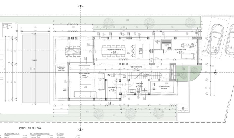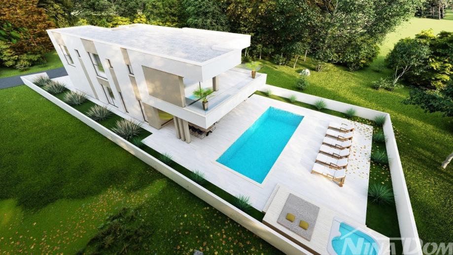 U prizemlju nekretnine se nalazi dnevni boravak s blagovaonicom i kuhinjom., strojarnica , kupaonica , sauna i fitness prostor dok se na katu nalazi 4 spavaće sobe svaka sa zasebnom kupaonicom.