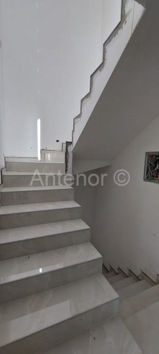 Trosobna kuća je tlocrtne kvadrature 132,31 m2, a sastoji se od prizemlja, kata i krovne terase. U prizemlju se nalaze kuhinja, dnevni boravak, blagavaona, kupaonica, spremište i natkrivena terasa. Unutarnjim stubištem dolazi se na kat gdje se nalaze hodnik, tri spavaće sobe i kupaonica. Krovna terasa je površine 39,80 m2 gdje se nalazi jacuzzi. U dvorištu kuće nalazi se 2 parkirna mjesta, bazen površine 16,64 m2 te uređeni vrt.