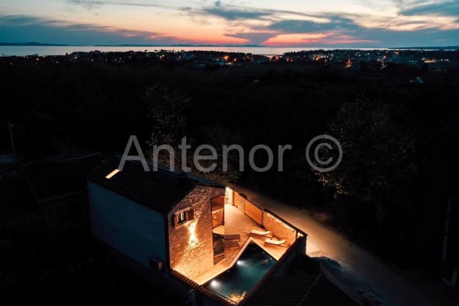 LUKSUZNA VILA (PRIVLAKA) - Prodaje se potpuno nova kamena vila koja se nalazi u Privlaci u mirnom predjelu okružena prirodom, udaljena 400 m od mora i plaže. Vila je građena od kamena iz 1905. godine i predstavlja odličan spoj stare kamene kuće i moderne arhitekture.