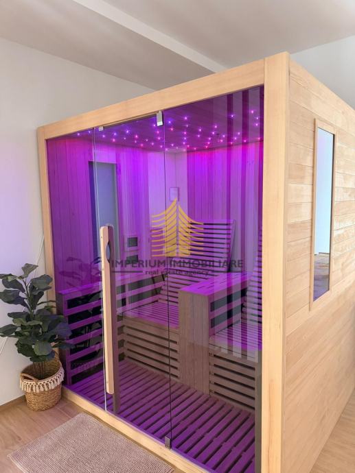 Posebnu vrijednost čine luksuzni sadržaji kao što su bazen i sauna, koji osiguravaju vrhunski komfor i opuštanje u vlastitom domu. Dodatni elementi poput balkona i lođe pružaju dodatne površine za odmor i uživanje u pogledu. Dizajnerski i umjetnički detalji upotpunjuju dojam jedinstvenosti ove nekretnine.