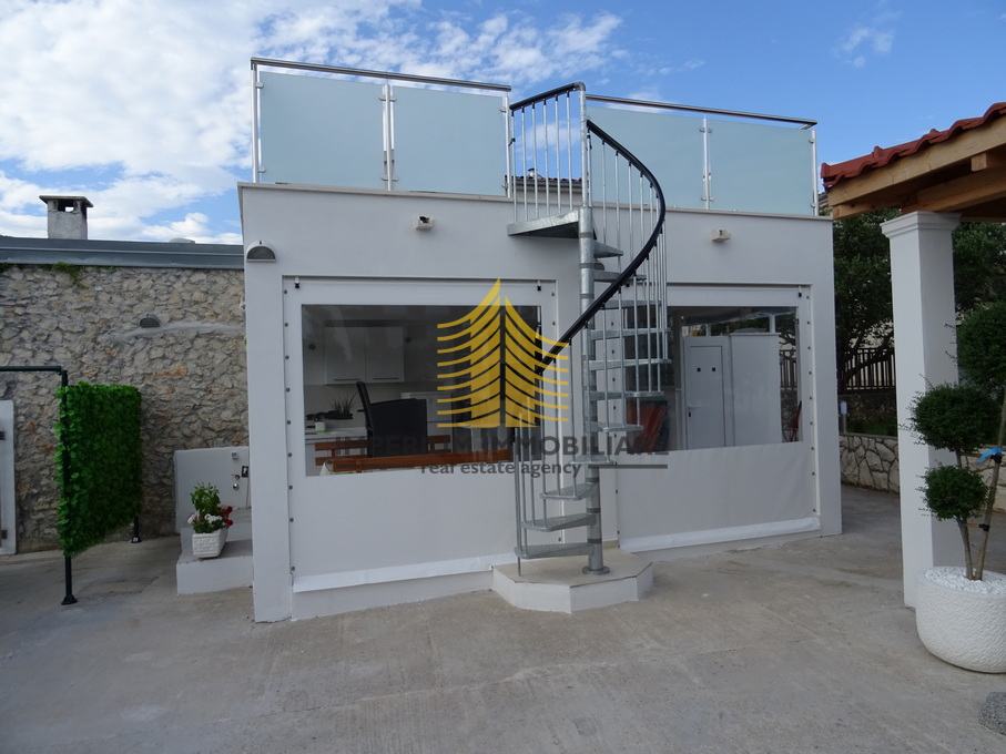 Uz nekretninu dolazi i pomoćni objekt (u naravi ljetna kuhinja) sa bazenom i ograđena terasa za sunčanje.
