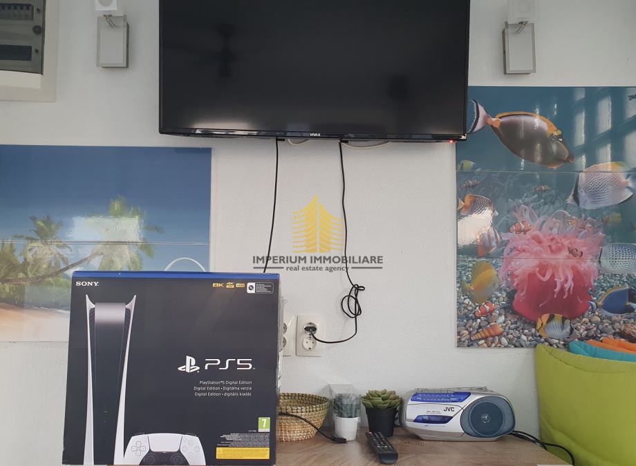 Unutrašnjost je opremljena modernom kuhinjom s aparatima, perilicom rublja, kadom, perilicom posuđa, TV-om, krevetom i radnim stolom. Grijanje i hlađenje osigurani su klima uređajem, što omogućuje ugodnu temperaturu tijekom cijele godine. Na raspolaganju je parkiralište, a dodatno pogodnost predstavlja vez za barku, što ovu nekretninu čini izuzetno privlačnom za ljubitelje nautike.