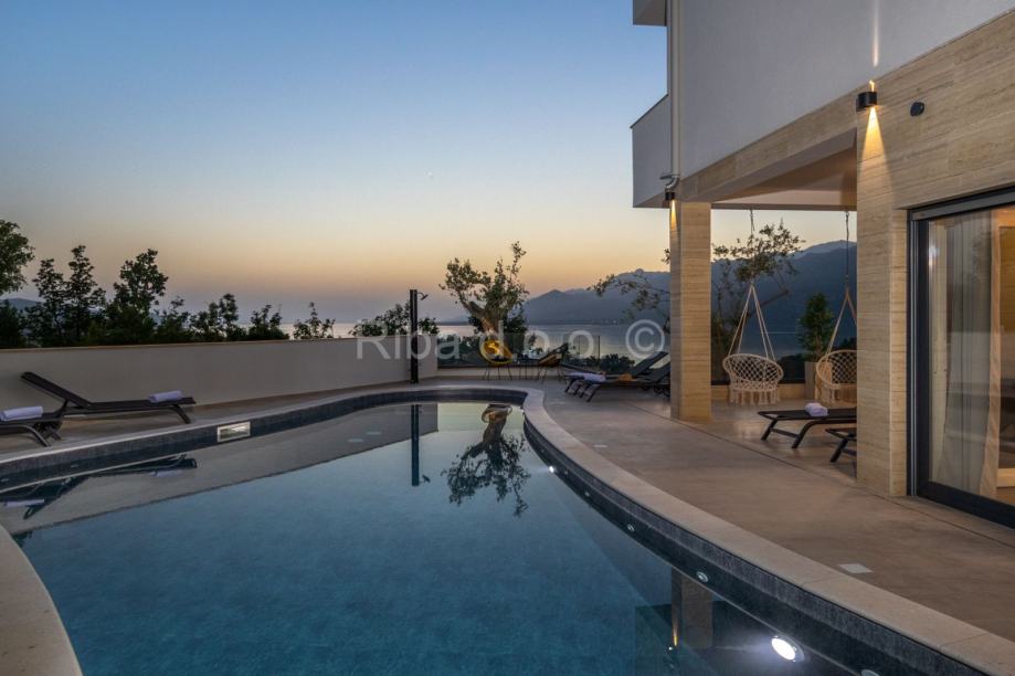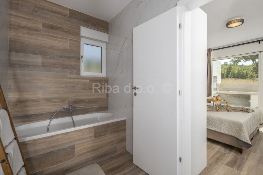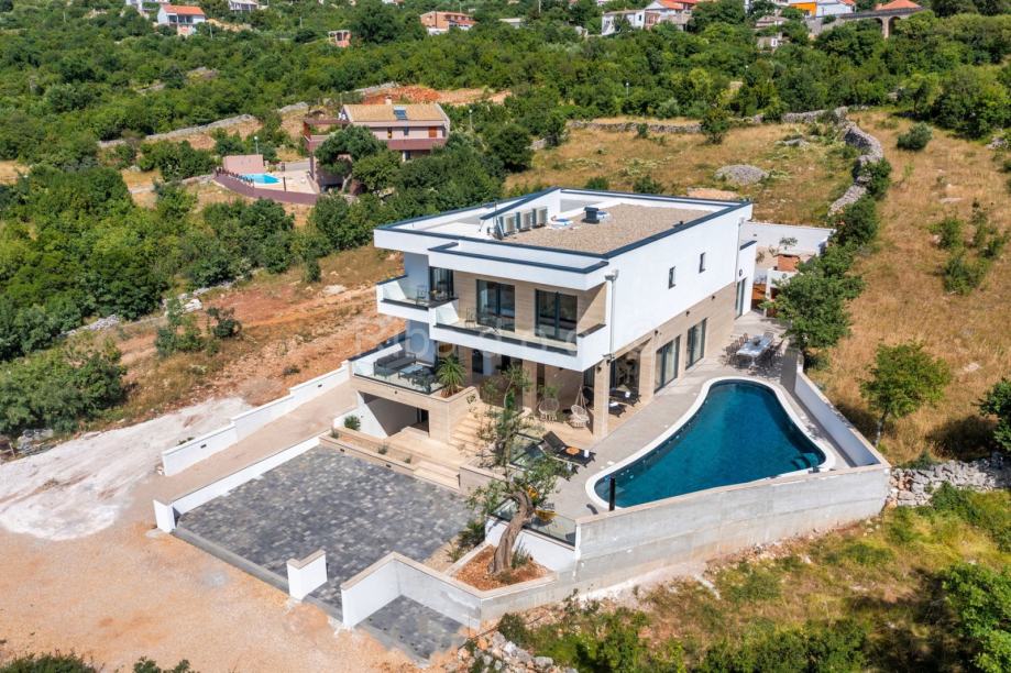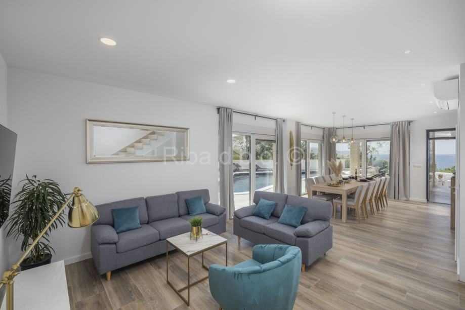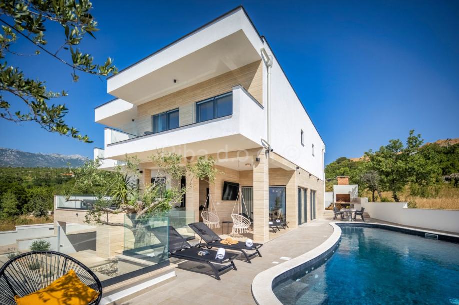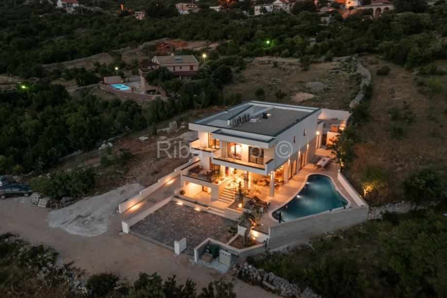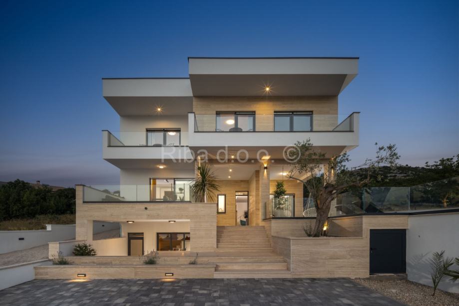 Nova luksuzna kuća nalazi se u Rovanjskoj, svega 400 metara od mora i plaže. Kako se nalazi na uzvisini iz kuće se pruža prekrasan pogled na more i planine.