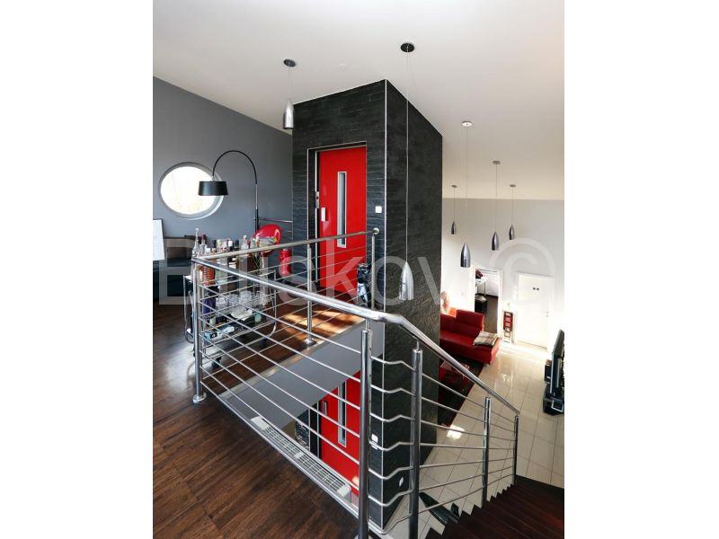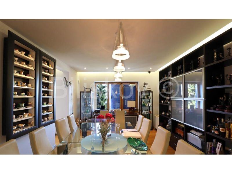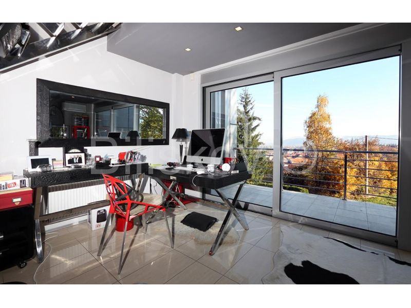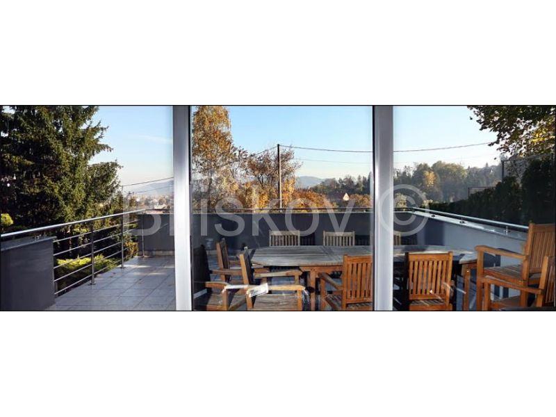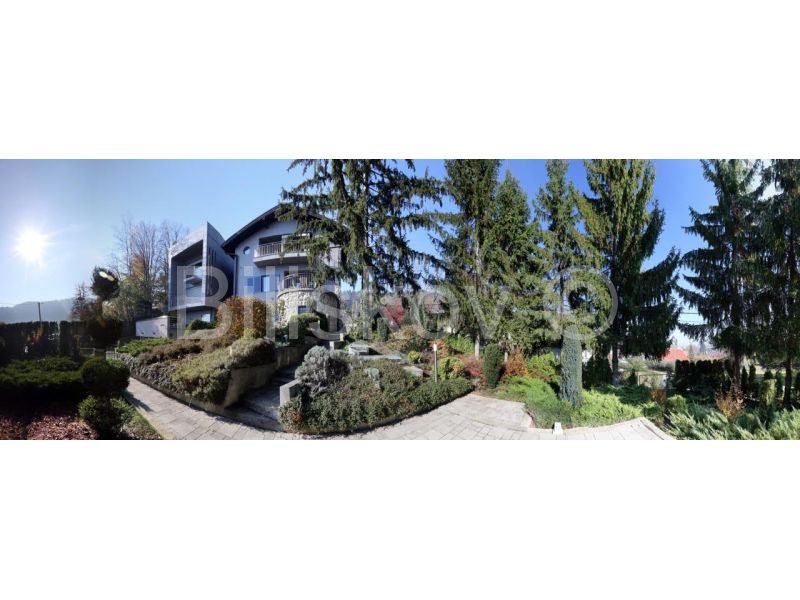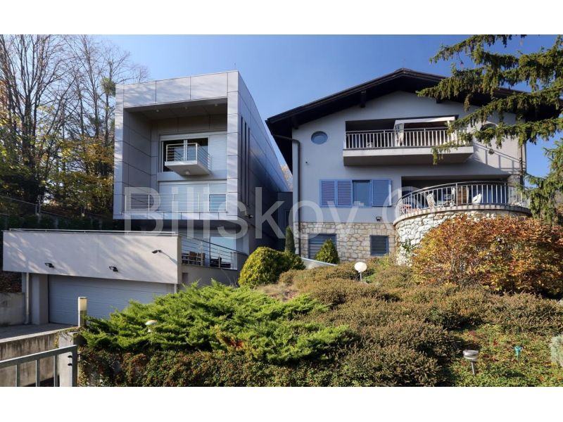 Moderan objekat u neposrednoj blizini centra s lijepim pogledom na grad. Bruto površina: 625 m2. Neto površina: 458 m2 Orijentiran je na jugoistočnu i sjeverozapadnu stranu. Sastoji se od dva međusobno povezana objekta koji mogu biti samo stambene ili stambeno-poslovne namjene. Prvi objekat, izgrađen je 2005. godine, a sastoji se od 3 etaže: Podrum: kotlovnica, radionica, praonica rublja, čajna kuhinja, vinski podrum, kupaonica s wc-om, terasa, gimnastička soba, sauna i bazen s grijanom vodom i mogučnošću protustrujnog plivanja. Prizemlje: dnevni boravak, blagovaonica, kuhinja, ostava, gostinjski wc, terasa, predsoblje te glavni ulazni prostor sa terasom. Treća etaža: 3 spavaće sobe, 2 kupaonice sa WC-ima, radna soba, garderoba i terasa. Drugi dio kuće ima 4 etaže te je funkcionalno povezan sa prvim. Izgrađen je 2006. godine. 1.etaža: garaža sa dva parkirna mjesta, vinski podrum i ostava. 2.etaža: velika soba, garderoba, prostor predviđen za kuhinju, kupaonica sa WC-om i prostrana terasa. 3.etaža: prostrani dnevni boravak, pomoćna spavaća soba i 2 WC-a. 4.etaža: galerija koja se koristi kao bar, a može biti i radni prostor ili spavaonica. Objekat je opremljen liftom, sigurnosnim sustavom, internom telefonskom centralom te internetom. Ima etažno plinsko grijanje i klima uređaje. Stolarija je aluminijska i kombinacija drva i aluminija. Objekat posjeduje građevinsku i uporabnu dozvolu. Energetski razred B.