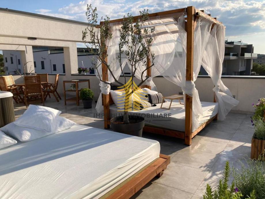 Ova nekretnina nudi niz luksuznih pogodnosti koje podižu kvalitetu života na višu razinu: sauna, jacuzzi, bazen, wellness zona, prostor za fitnes i roštilj, idealni za opuštanje i druženje. Dodatno, dizajnerski elementi interijera pažljivo su birani kako bi zadovoljili i najzahtjevnije ukuse.