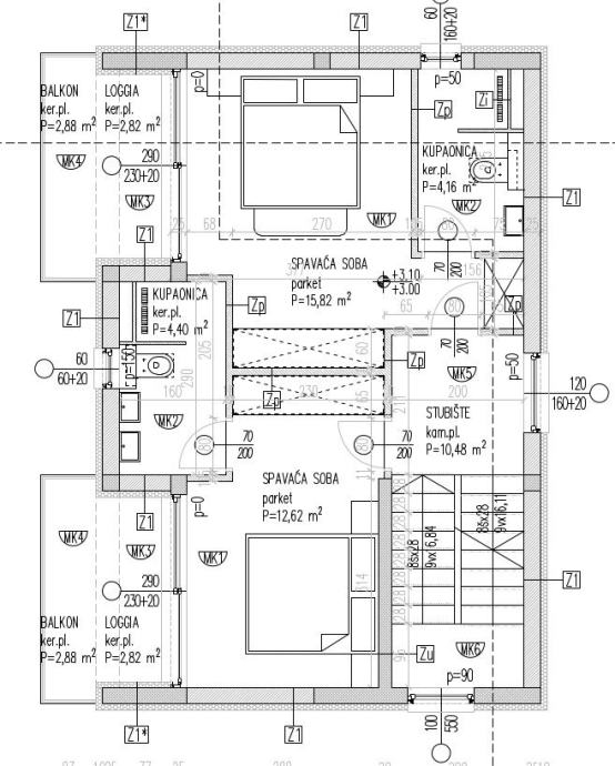 - 2.kat - 2 spavaće sobe s kupaonicom i balkonom