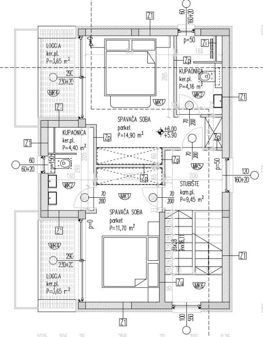 - 1.kat - 2 spavaće sobe s kupaonicom i balkonom