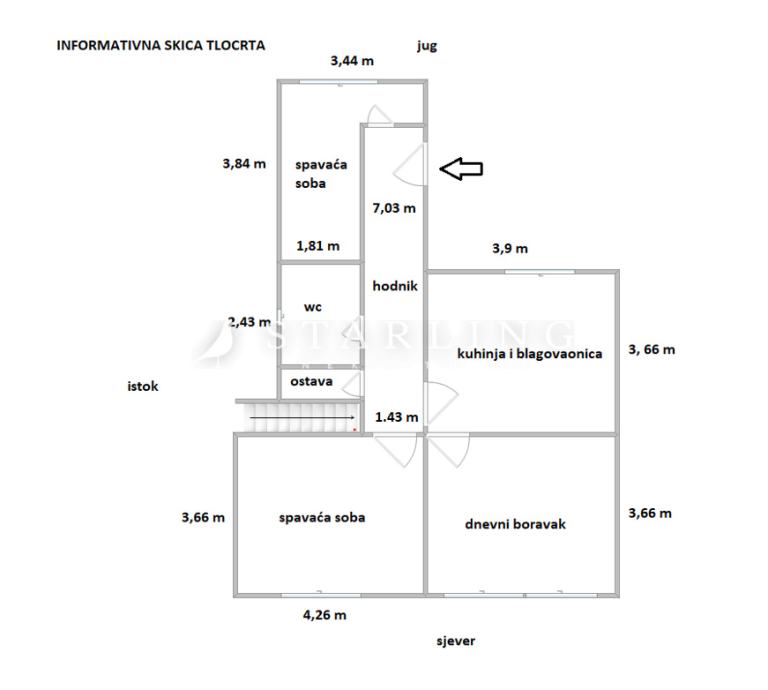 Na tavanu se nalazi neuređeno potkrovlje s balkonom.