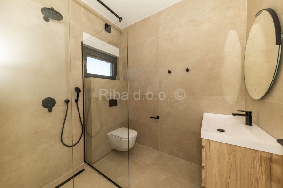 Kuća seprostire na dvije etaže i sastoji se od prostranog dnevnog boravka s kuhinjom i blagovaonicom, 4 spavaće sobe, 3 kupaonice, 1 toaleta, spremišta, hodnika i više terasa.
