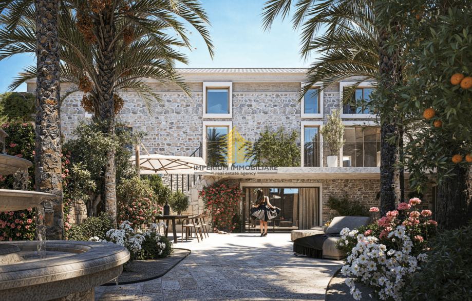 Na prodaju je samostojeća kuća površine 154 m2 smještena u Supetru, s pripadajućom parcelom od 476 m2. Ova kamena kuća odiše autentičnim šarmom i ističe se mirnom lokacijom te prekrasnim pogledom. Prostrano dvorište, vrt, vrtna kućica, ljetna kuhinja i bazen čine ovu nekretninu izvrsnim izborom za one koji traže savršeno mjesto za odmor ili svakodnevni život u umjetnički i dizajnerski uređenom prostoru.