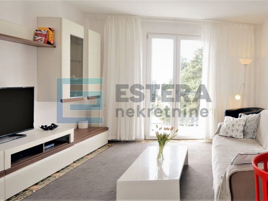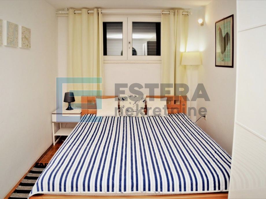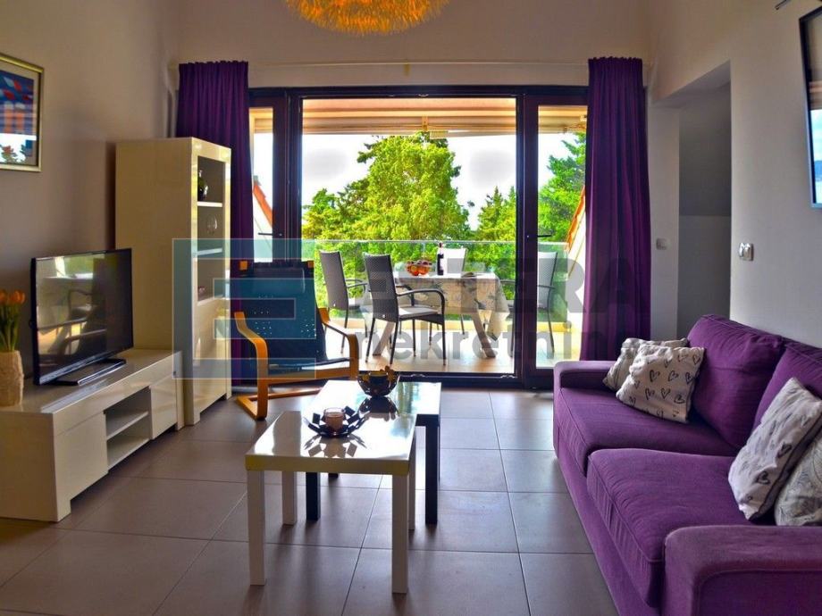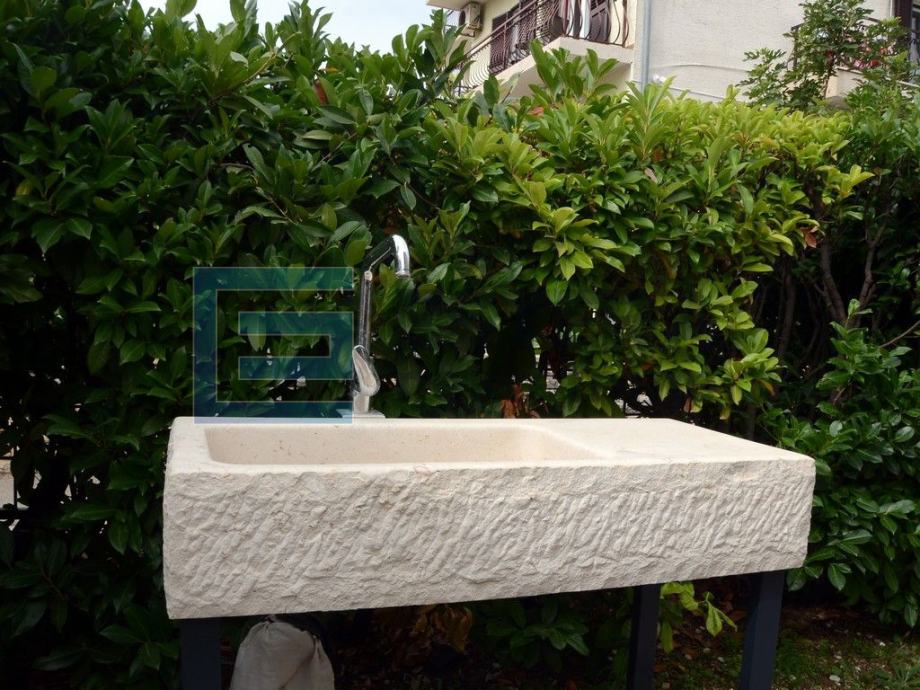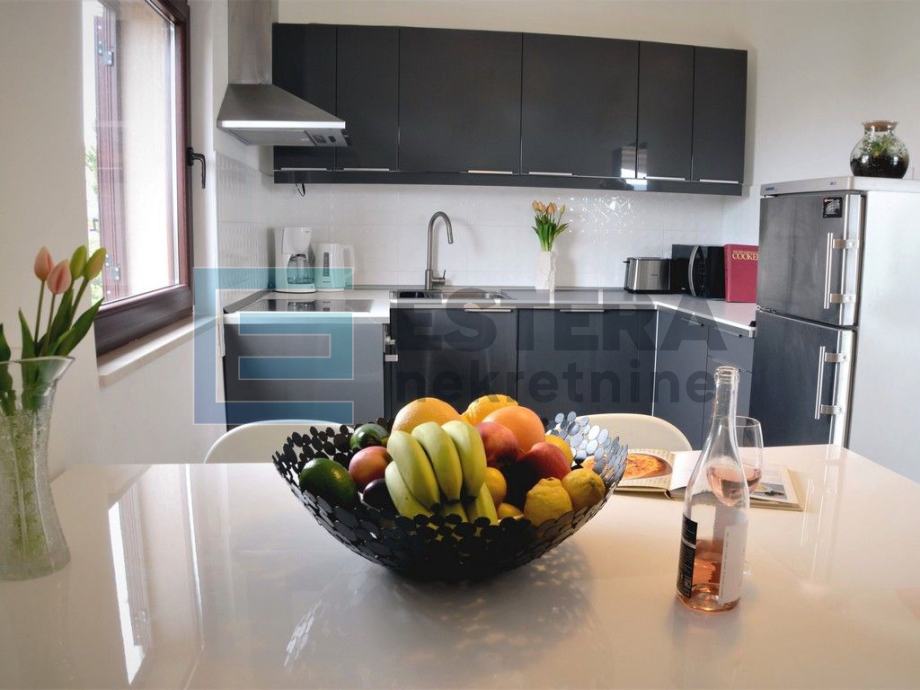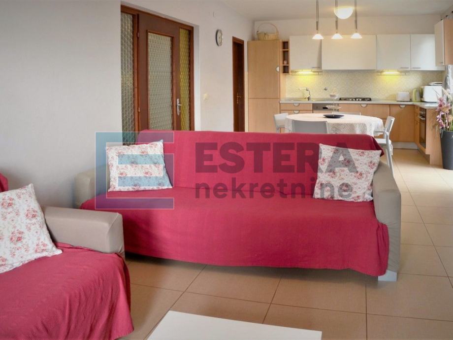 Apartmana u visokom prizemlju ukupne površine 77,50 m2 – koji se sastoji od dvije spavaće sobe, dnevnog boravka, blagovaonice, kuhinje, ostave, kupaonice, wc-a i terase I 13,50 m2 (obračun x 0,50 = 6,25) i terase II 5,62 m2 (obračun x 0,50 = 2,81). Sveukupne stambene površine 86,56 m2