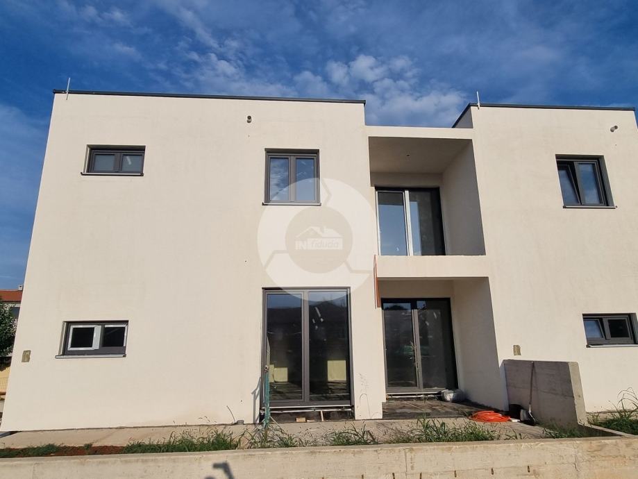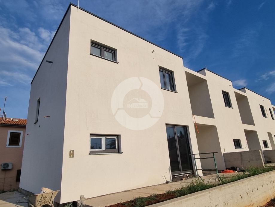 Prodaje se kuća u nizu od 115 m2, u izgradnji, sa bazenom od 24 m2 i vrtom od 110 m2.Prizemlje kuće se sastoji od predsoblja, kuhinje sa blagovaonom i dnevnog boravka, toaleta, spremišta i terase.Na prvom katu smještene su tri spavaće sobe svaka sa svojim kupatilom i terasa.U dvorištu se nalazi bazen od 24 m2 sa plažom, vrt i dva parkirna mjesta.Grijanje je regulirano podno i putem klima uređaja.Završetak gradnje je predviđen u 10/2024.