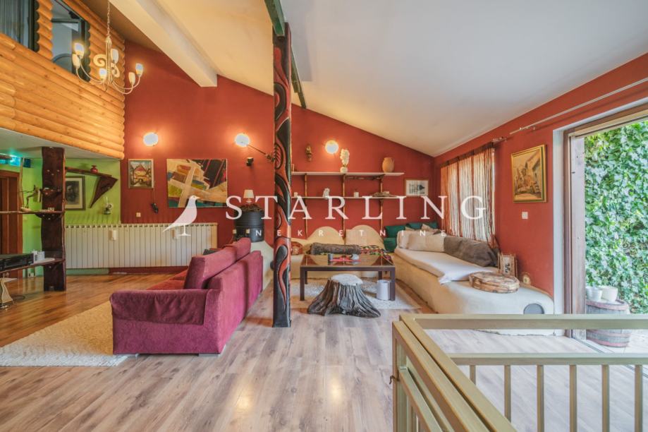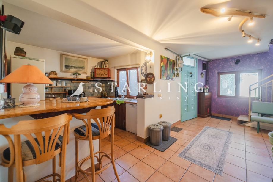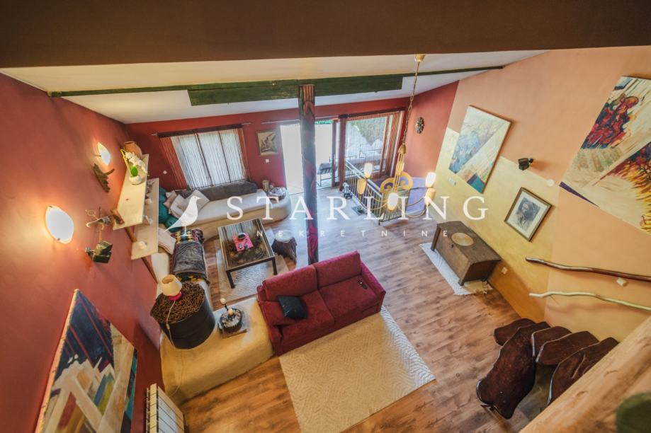 Kuću posebno izdvaja veliki dnevni boravak na katu s izlazom na prostranu terasu koja pruža dodatni prostor za boravak na otvorenom.