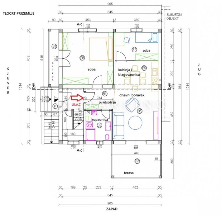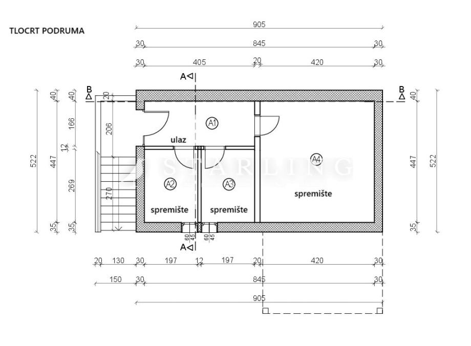Prema Građevinskoj dozvoli predviđena je gradnja tri stambene jedinice, spremišta u podrumu (36 m2) i 6 vanjskih nenatkrivenih parkirnih mjesta.