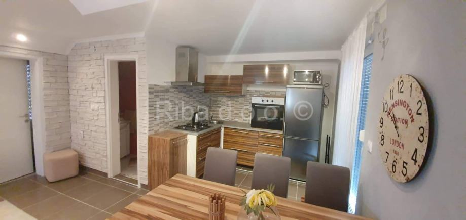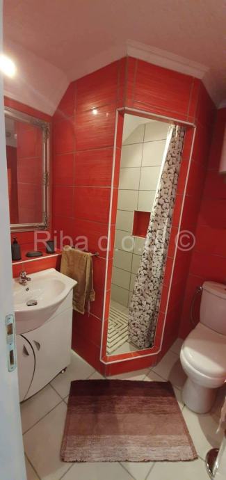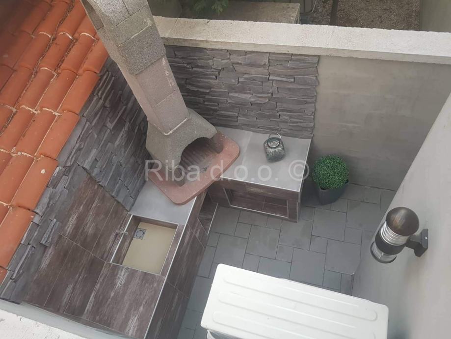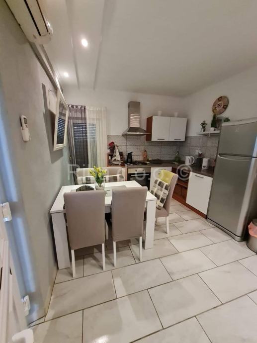 Kuća s dva apartmana i izlazom na krovnu terasu. Potpuno namještena i spremna za život ili najam. Sastoji se od dva dvosobna apartmana, malog dvorište s roštiljom i velike krovne terase sa prekrasnim pogledom na more. Neposredna blizina plaže.