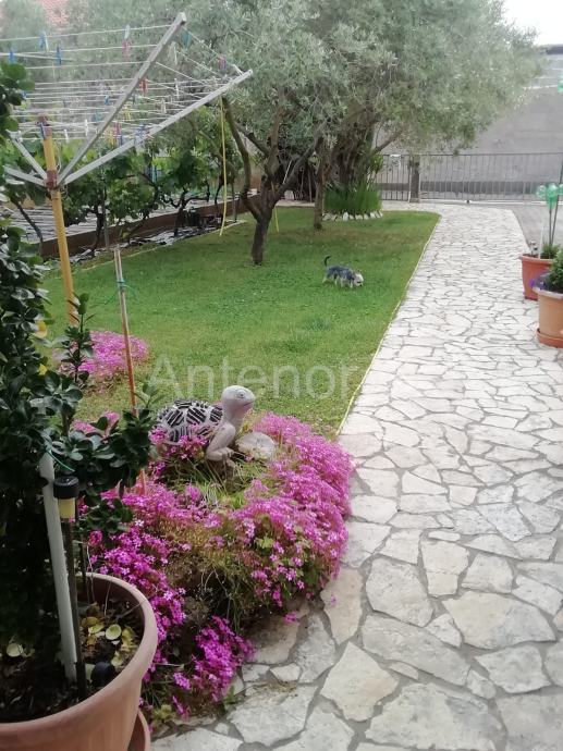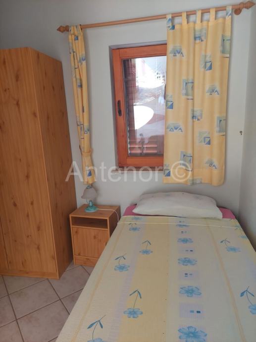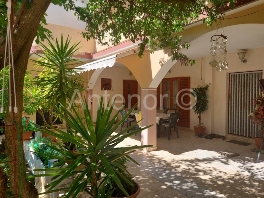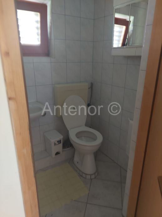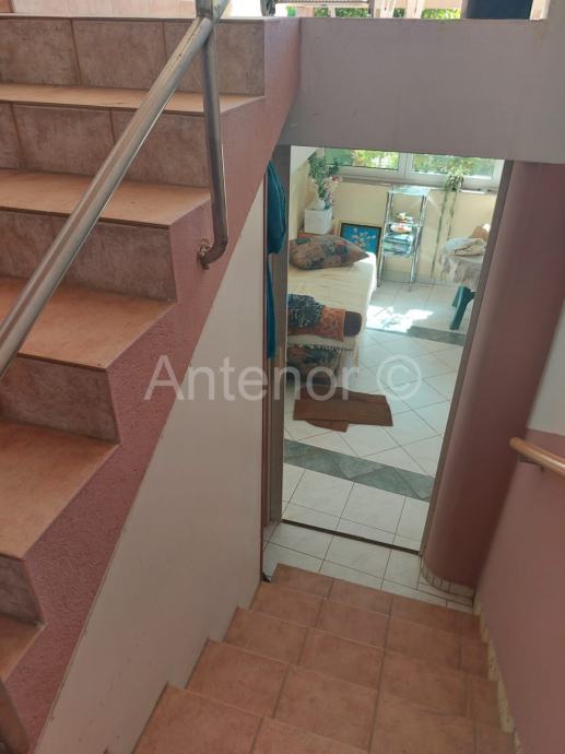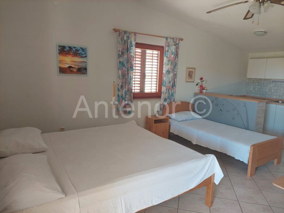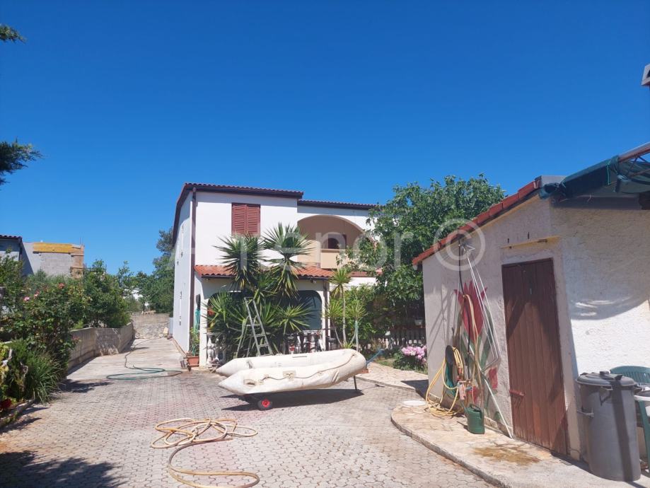 VIR - prodaje se samostojeća kuća sa 4 stambene jedinice. Sastoji se od prizemlja i kata. U prizemlju se nalazi trosoban stan koji se sastoji od kuhinje, blagovaone, dnevnog boravka, tri spavaće sobe, dvije kupaone i velike natkrivene terase. Na katu se nalaze tri studio apartmana i jedna soba s kupaonicom i velikom terasom. Prostrana okućnica uređena je i održavana. U dvorištu se nalazi vrtna kućica s roštiljem. Kuća se nalazi u blizini centra Vira, a od mora i plaže Jadro udaljena je cca 300 m. U mirnom je dijelu mjesta, u slijepoj ulici. Vlasništvo je uredno: 1/1. Cijena kuće je 460.000,00 €.