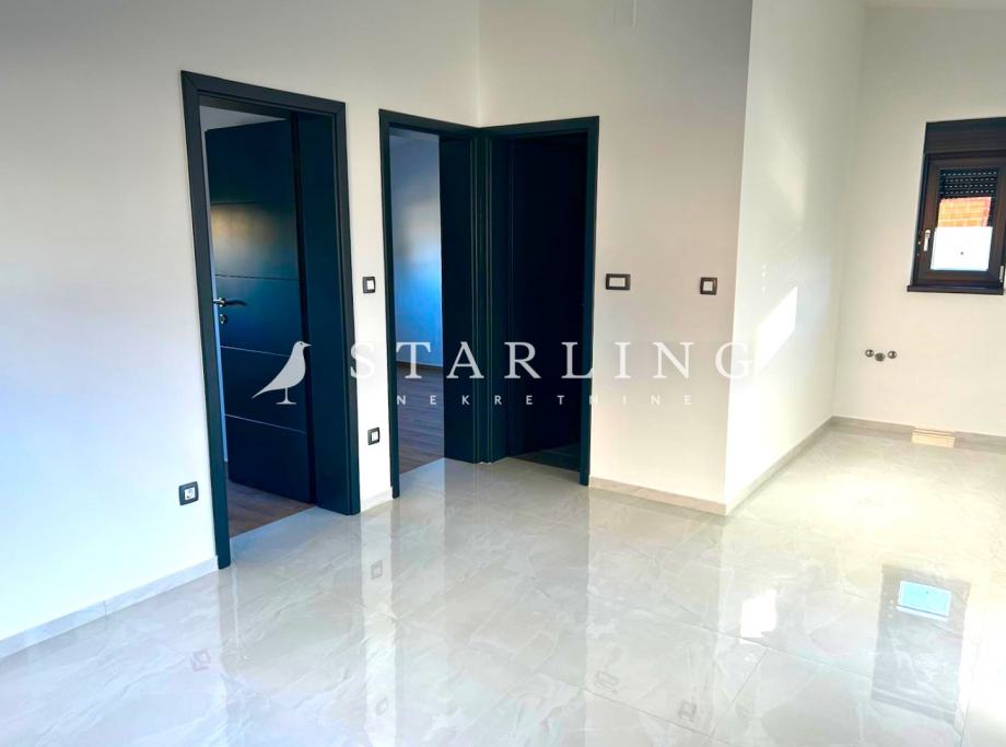 U prizemlju kuće se nalazi dnevni boravak sa kuhinjom, dvije spavaće sobe, kupaonica te prostrana natkrivena terasa površine 22,17 m2.
