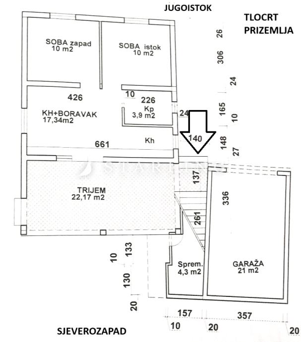 Parking: garaža+nenatkriveno parkirno mjesto
