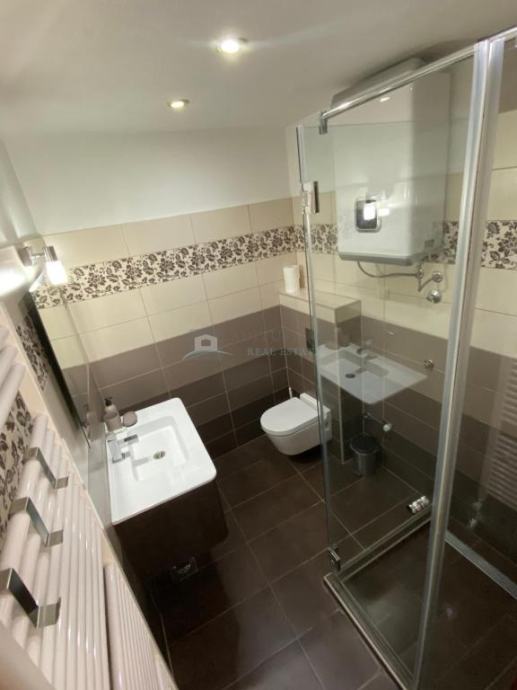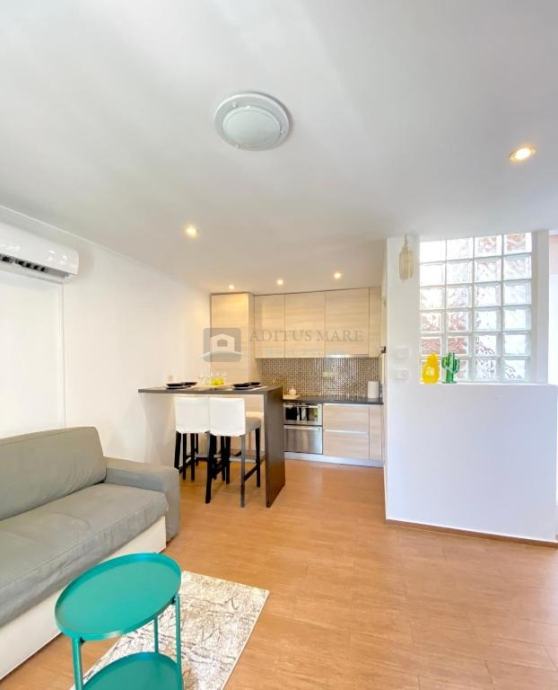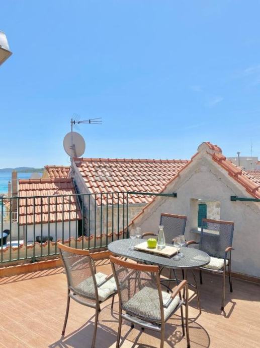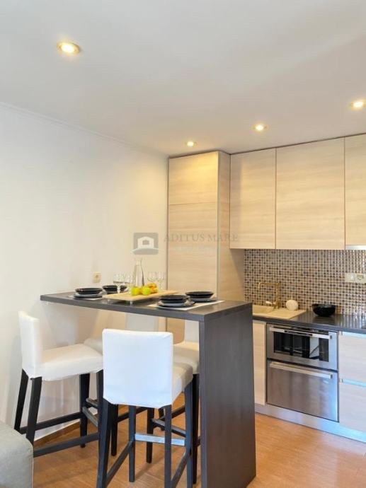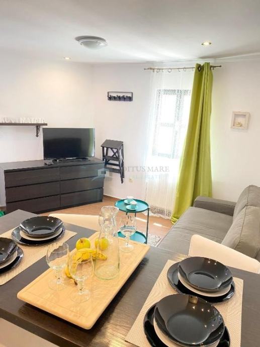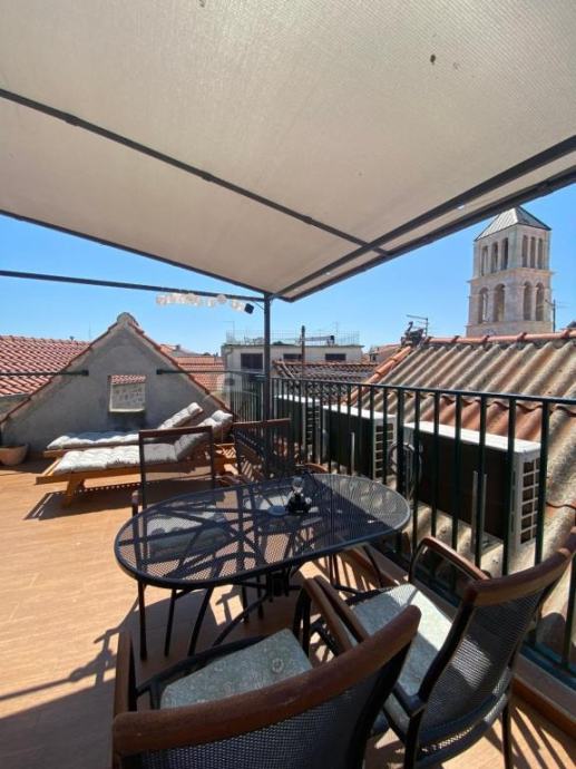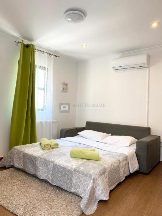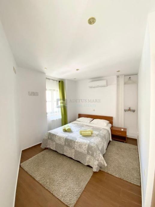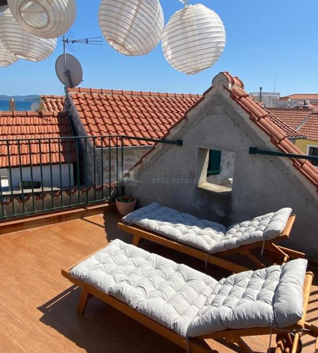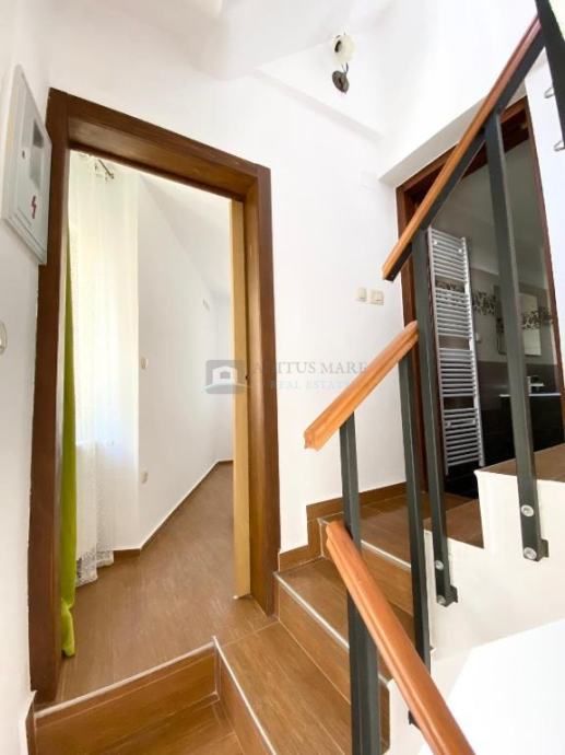 Zasebnim ulazom dolazi se do namještene stambene jedinice koja se sastoji od dnevnog boravka sa blagovaonom i kuhinjom, spavaće sobe, kupaonice te uređene krovne terase sa prekrasnim pogledom na more.