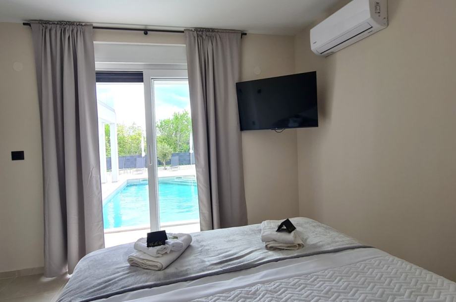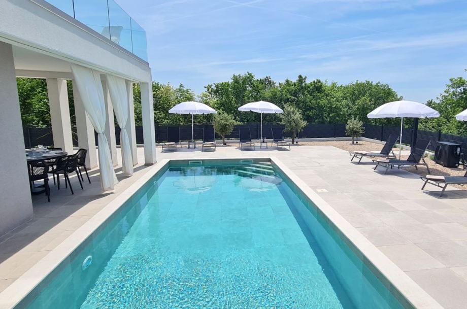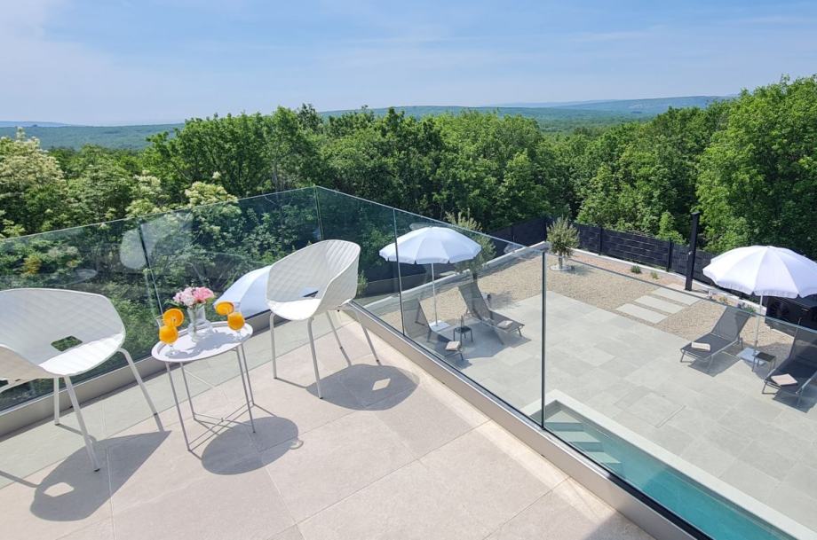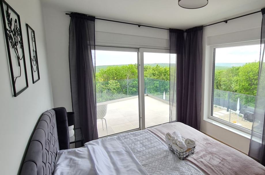 Otok Krk, Vrbnik, Garica, prodaja atraktivne vile površine 175,47 m2, s bazenom i uređenom okućnicom, na parceli površine 736 m2. Vila se sastoji od prizemlja s dnevnom sobom s kuhinjom i blagovaonom, spavaćom sobom s kupaonicom, dva spremišta, ostavom, toaletom, hodnikom i terasom, prvog kata s tri spavaće sobe s kupaonicama, hodnikom i dvije terase. Kvalitetna gradnja i oprema, klimatizacija, dva parkirna mjesta. Mirna lokacija, na rubu zelene zone, 7000 m od mora.