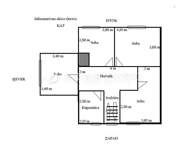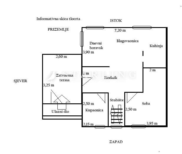 – u prizemlju se nalazi dnevni boravak s blagovaonicom i kuhinjom, soba, kupaonica s tuš kabinom, ostava, zimska terasa i hodnik sa stepenicama koje vode na kat gdje se nalaze četiri sobe, kupaonica s kadom i hodnik. Dodatnu vrijednost prizemlju daje ljetna kuhinja s vlastitim, zasebnim ulazom - idealna za druženja i pripremu jela u toplijim mjesecima.