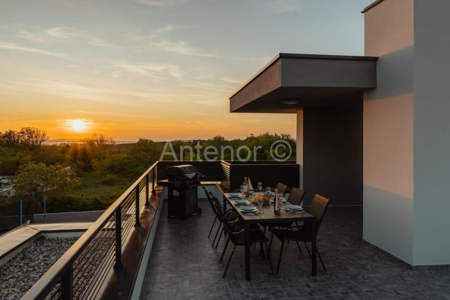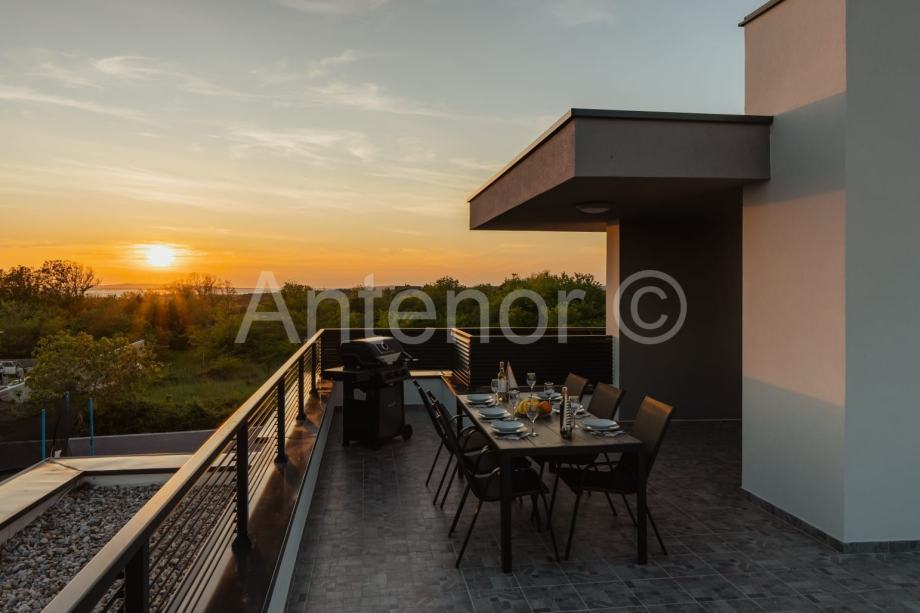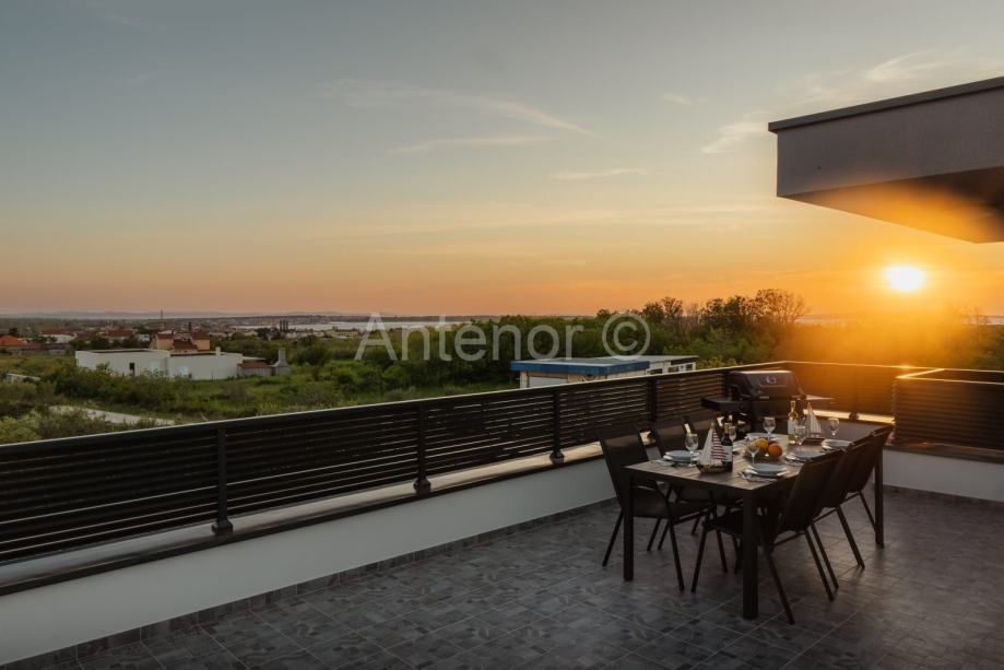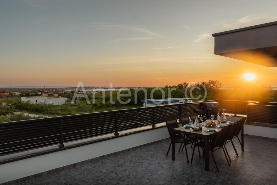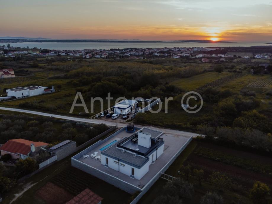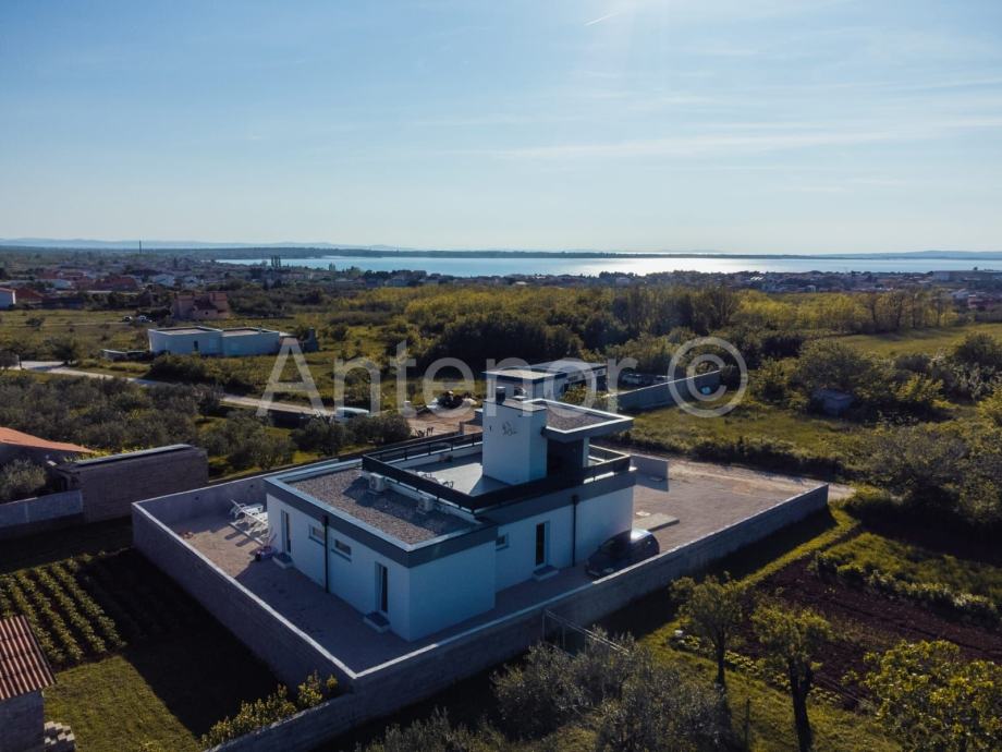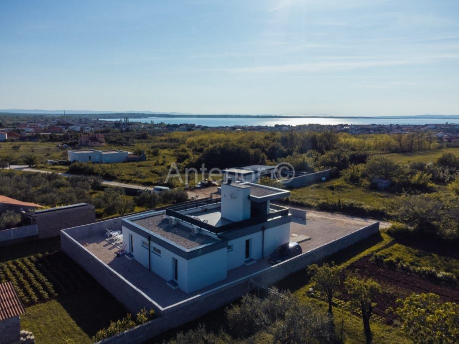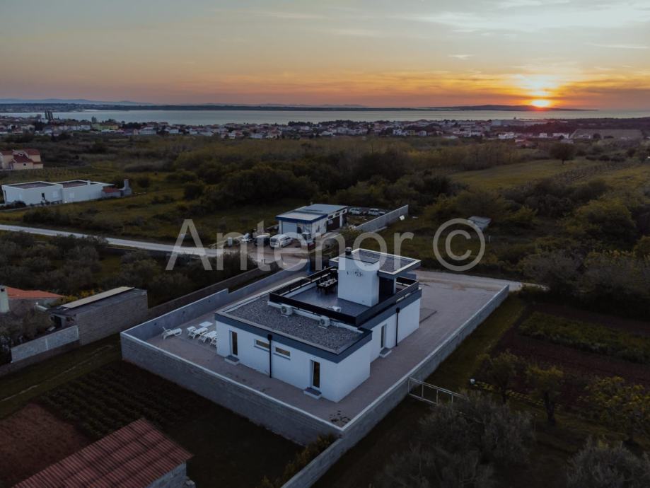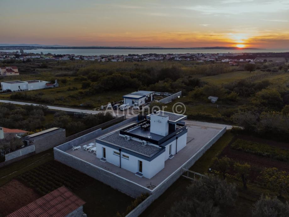 Kuća je sagrađena na pareceli površine 685 m2. Udaljenost od mora i plaže je 2 km. S krovne terase pruža se prekrasan pogled na more, ninski zaljev i Velebit.