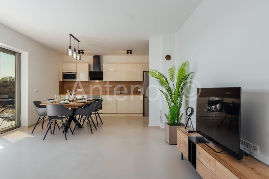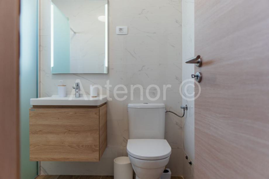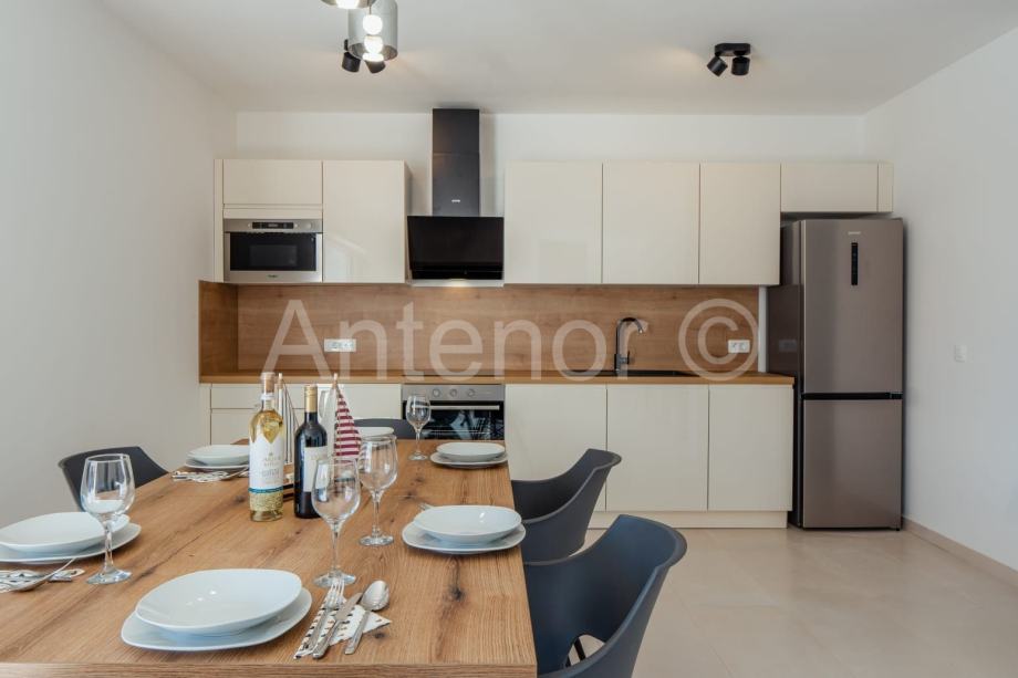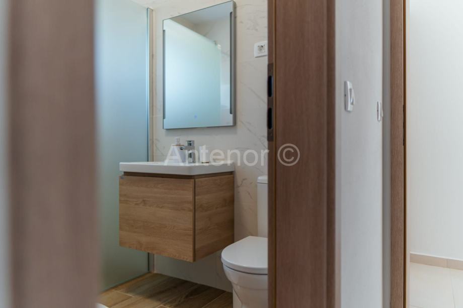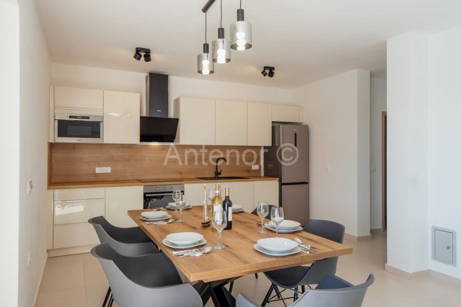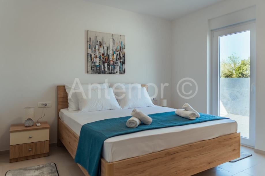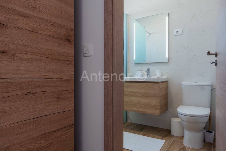 Kuća se nalazi 2 km od mora u mjestu Vrsi. Kuća se sastoji od prizemlja i krovne terase. U prizemlju se nalazi dnevni boravak, kuhinja, blagavaona, tri spavaće sobe, tri kupaonice, ulazni prostor, wc, hodnik i terasa.