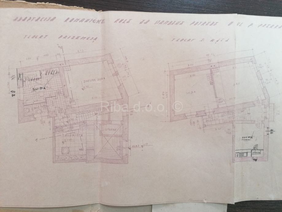 Kuća ima veliku lokacijsku vrijednost. Može se preurediti u obiteljsku ili apartmansku.