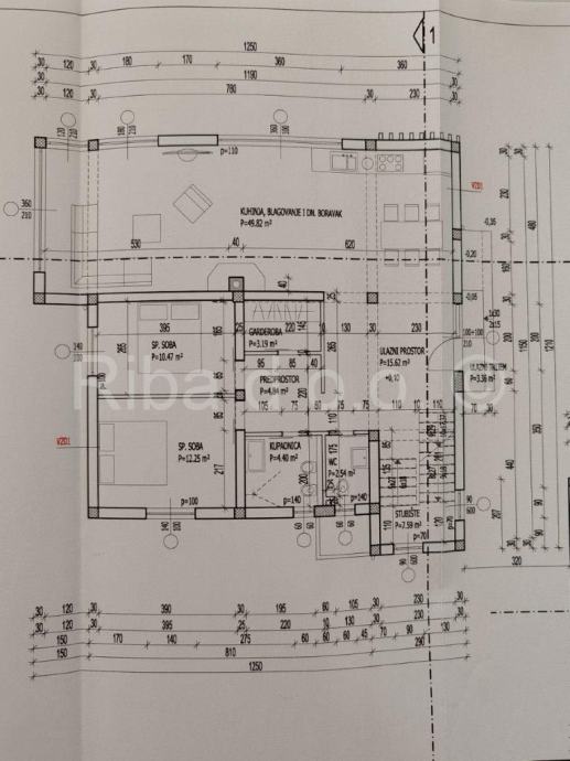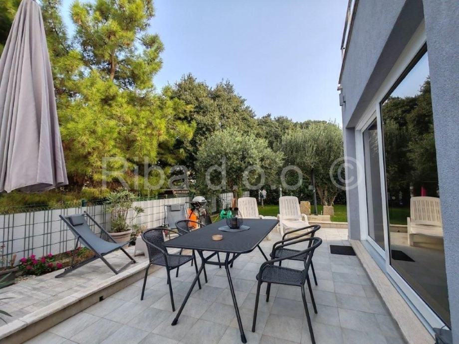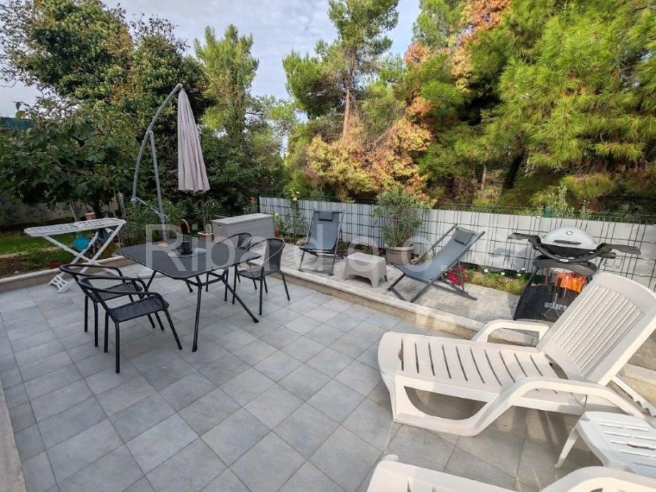 Prizemlje: Stan s odvojenim ulazom koji se sastoji od dvije spavaće sobe, kupaonice, wc-a, kuhinje s blagovaonicom te dnevnog boravka s izlazom na terasu i u prekrasno uređeni vrt bogat mediteranskim biljem.