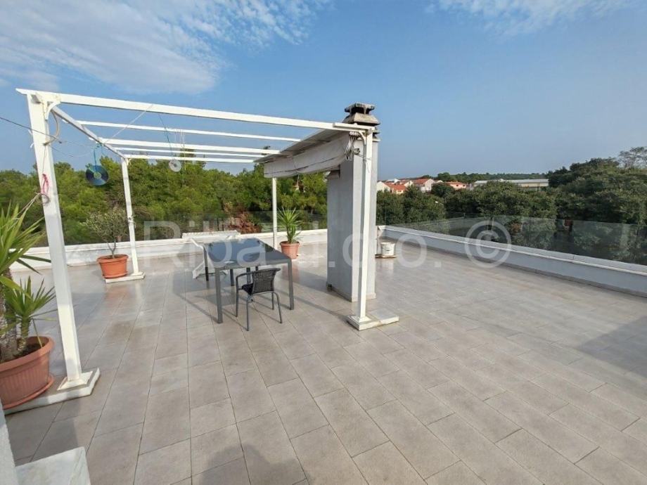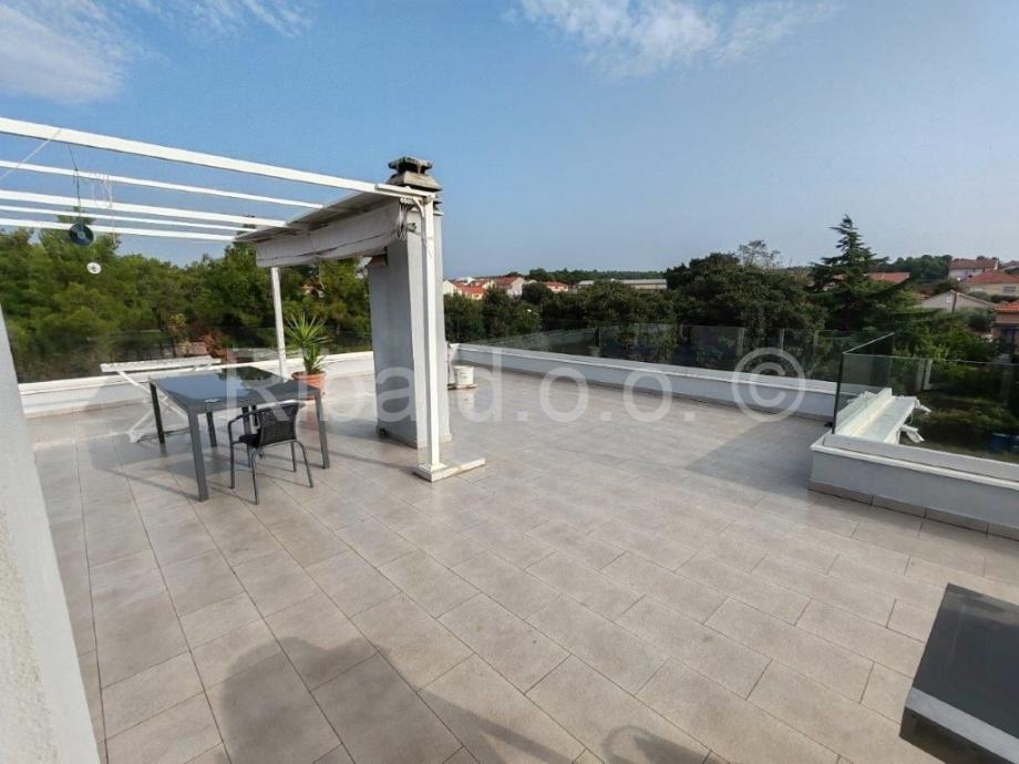 Kat: Stan s odvojenim ulazom i unutarnjim stubištem koje ga povezuje s podrumom i krovnom terasom. Sastoji se od dvije spavaće sobe, kupaonice, wc-a, kuhinje s blagovaonicom i dnevnog boravka te dviju terasa. Krovna terasa nudi čarobni pogled na more i idealna je za opuštanje uz večernje piće.
