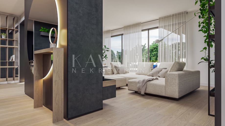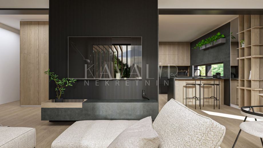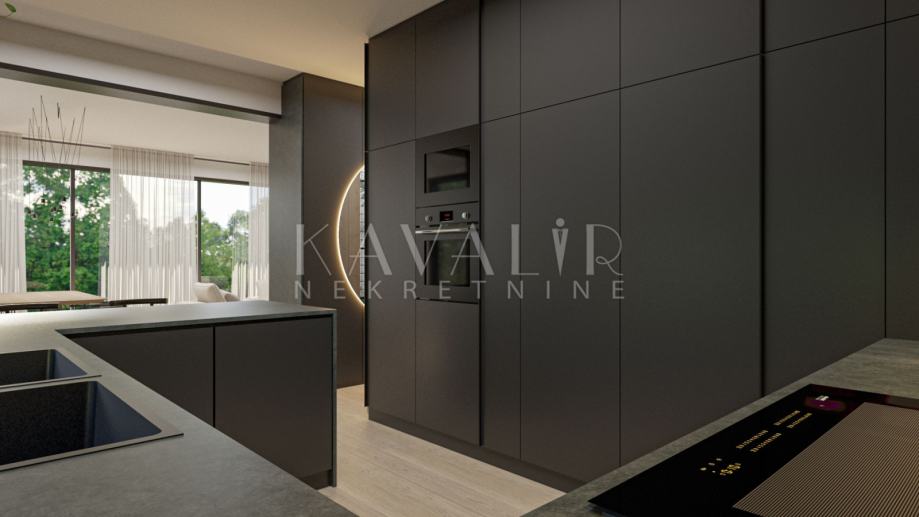 Kuća će biti nisko energetska (Energetski razred A+), opremljena kvalitetnim materijalima kao što je hrastov parket, vrhunska sanitarija i keramika te aluminijska stolarija s troslojnim staklima.