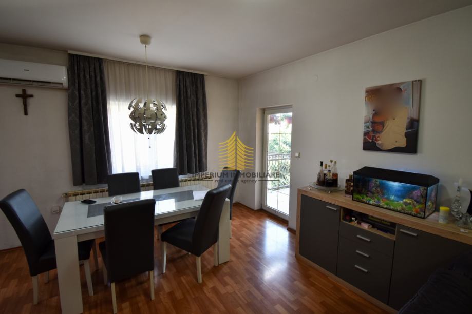 Kuća se ističe uređenom okućnicom i vrlo sunčanom pozicijom, što dodatno doprinosi ugodnom boravku. Terasa i dvorište omogućuju opuštanje na otvorenom te stvaraju idealan prostor za druženje ili obiteljske aktivnosti. Zahvaljujući centralnom grijanju i klimatizaciji, komfor je zajamčen tijekom cijele godine. Unutrašnjost uključuje potpuno opremljenu kuhinju s aparatima, perilicu posuđa, što pridonosi funkcionalnosti i svakodnevnoj udobnosti.