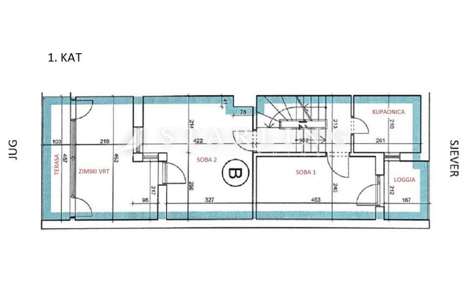 KAT: dvije spavaće sobe, zimski vrt s balkonom te kupaonica s wc-om.