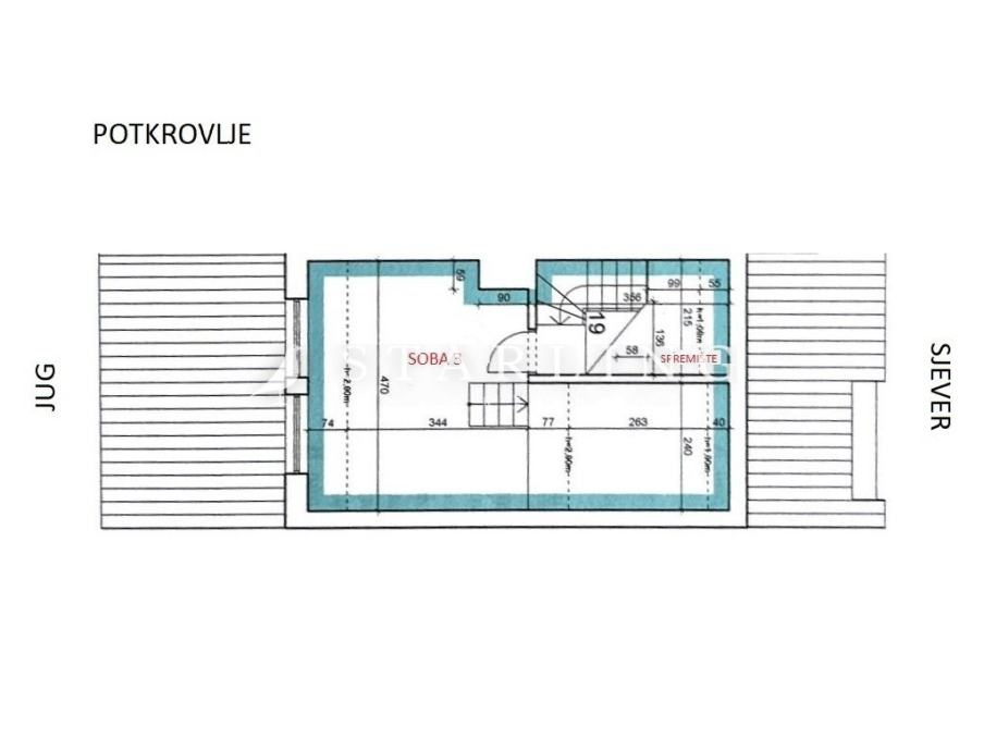 POTKROVLJE: spavaća soba s galerijom te ostava.