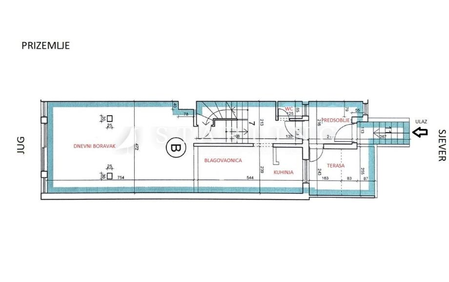 PRIZEMLJE: ulazna veranda, kuhinja s blagovaonicom, dnevni boravak s izlazom na vrt, WC, hodnik te balkon.