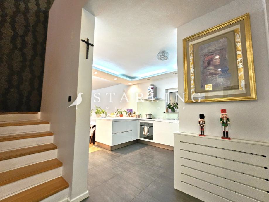 Kući pripadaju terasa od 50 m2 i vrt veličine 511 m2.