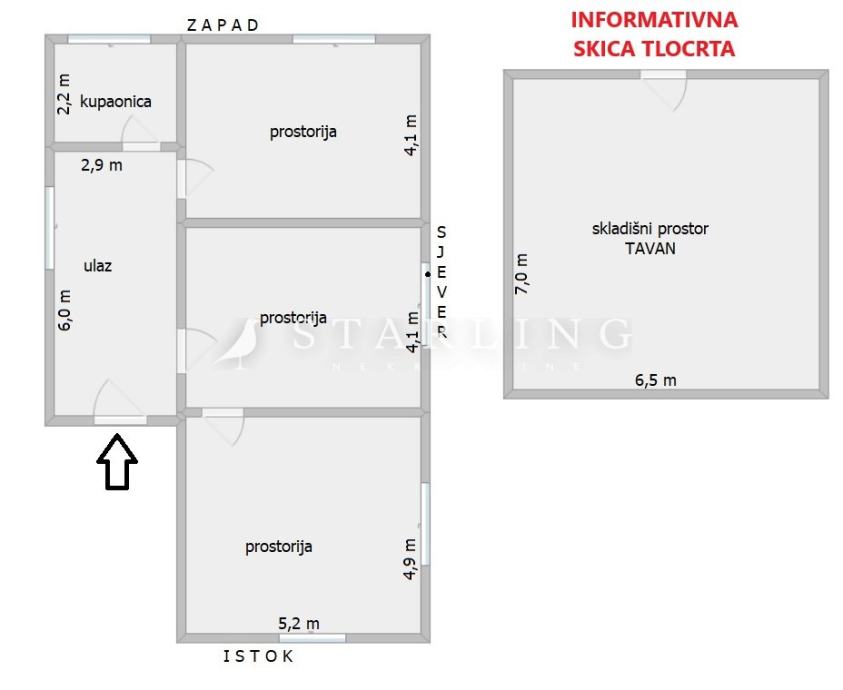 Kvadratura tavana nije iskazana u ukupnoj kvadraturi kuće.