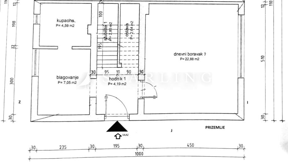 U prizemlju kuće se nalazi dnevni boravak, kupaonica , predprostor i hodnik.