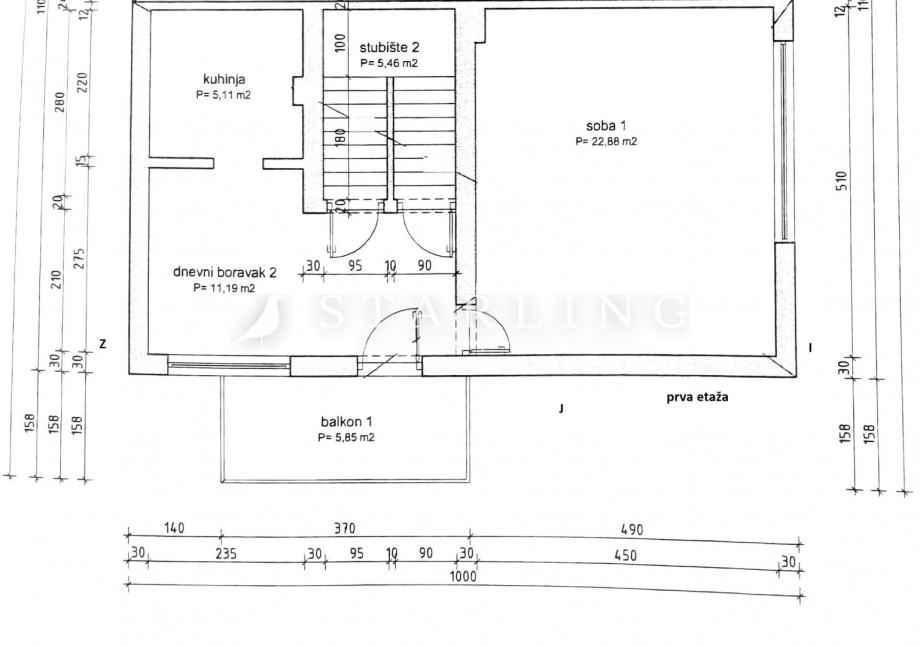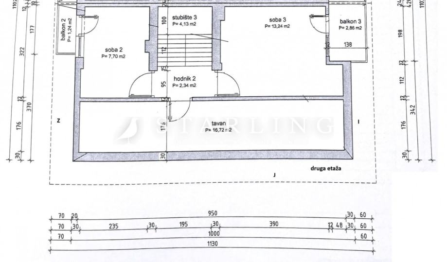 Na katu kuće nalazi se spavaća soba, kuhinja, blagovaonica i dva balkona.