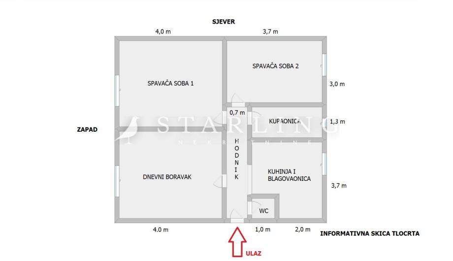- prizemlja u kojem se nalaze dnevni boravak, dvije sobe, kuhinja, kupaonica i zasebni wc.