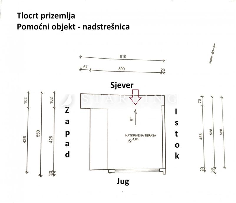 nadstrešnice - pomoćnog objekta površine GPB 14,68 m2.