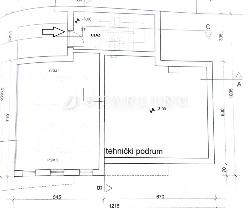 Suteren se sastoji od: tehničkog podruma i dva garažna parkirna mjesta.