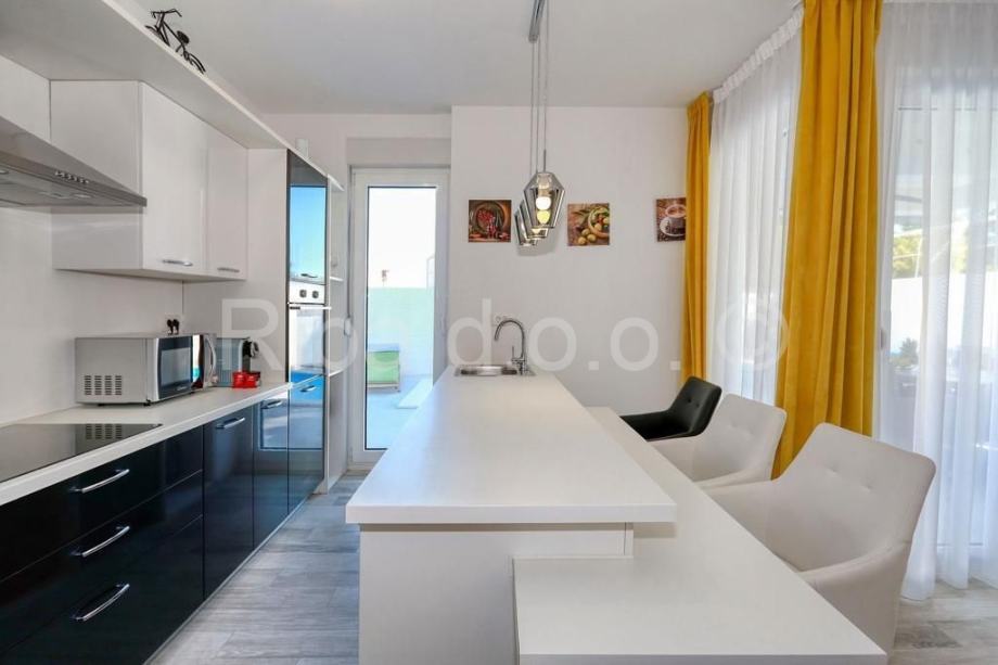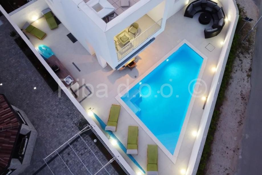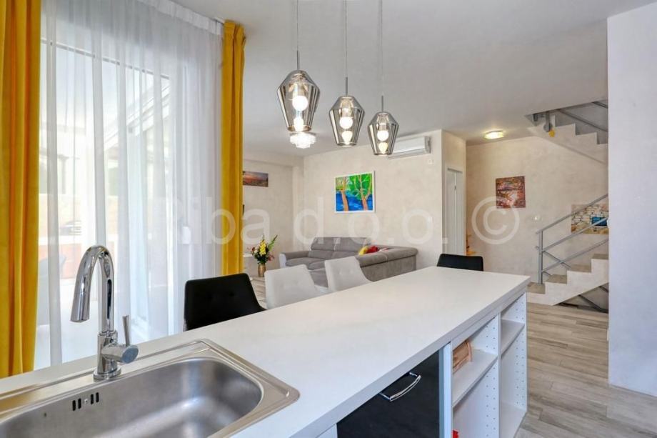 Tu su još prizemlje i prvi kat. Prizemlje se sastoji od kuhinje+blagovaonice i dnevnog boravka. Iz prizemlja se izlazi u dvorište s bazenom i roštiljem. Kat su tri spavaće sobe s dvije kupaonice.