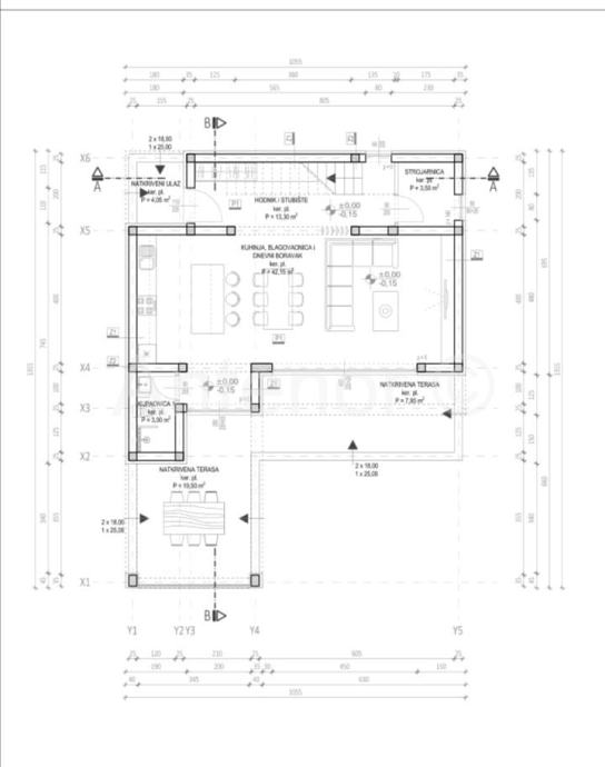 NIN - ZATON - Vila sa bazenom na mirnoj lokaciji. Kuća je građena na zemljištu površine 793m2. Tlocrtna površina kuće je 166,30 m2.