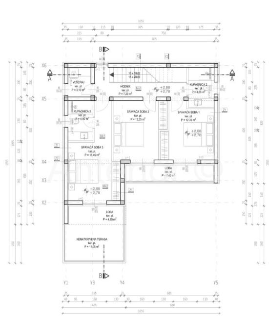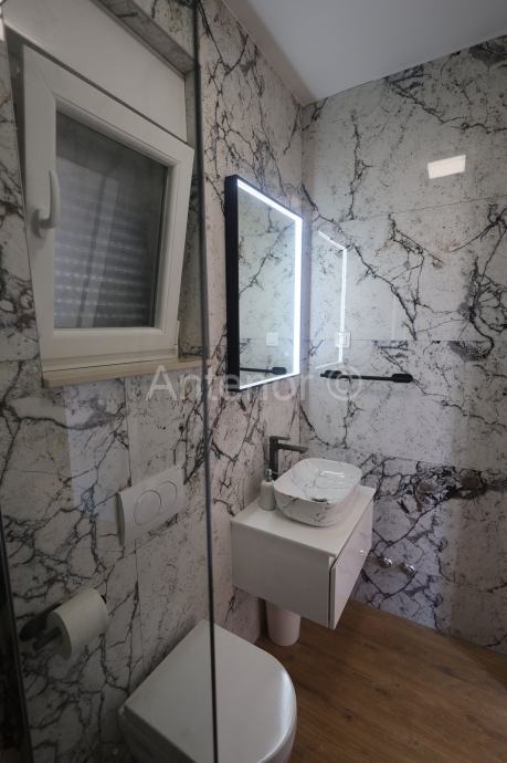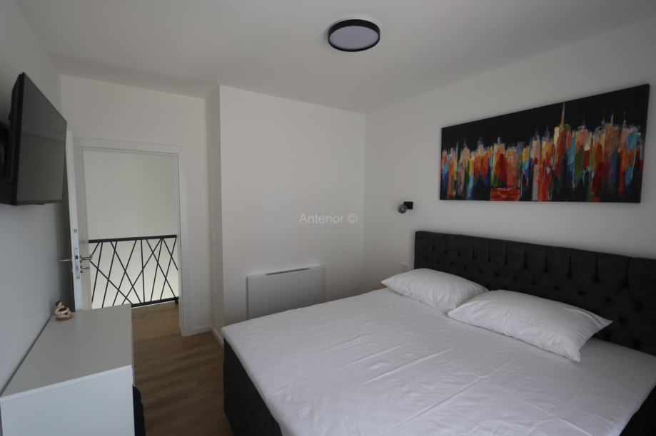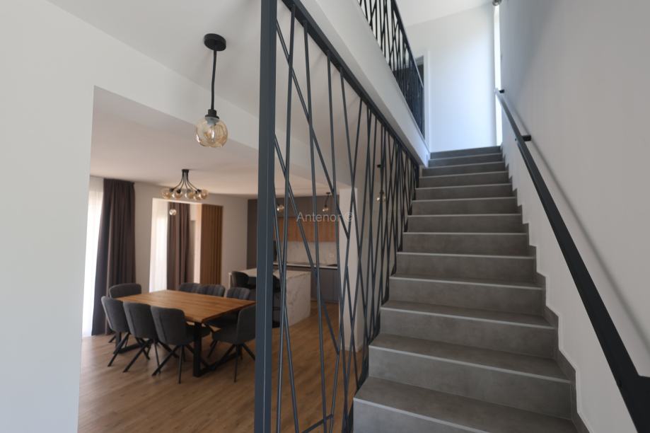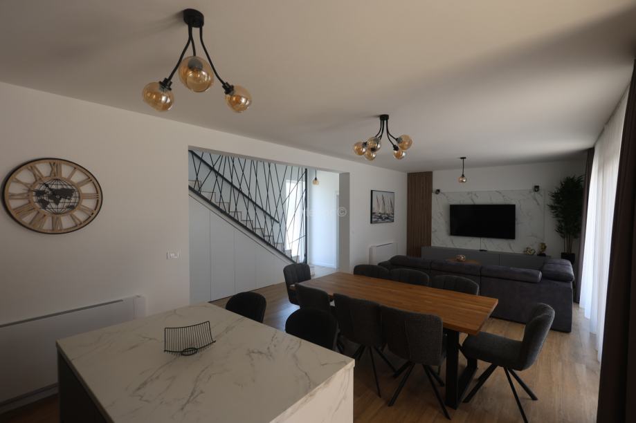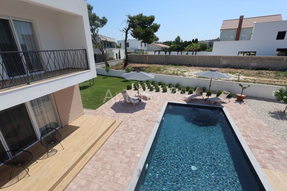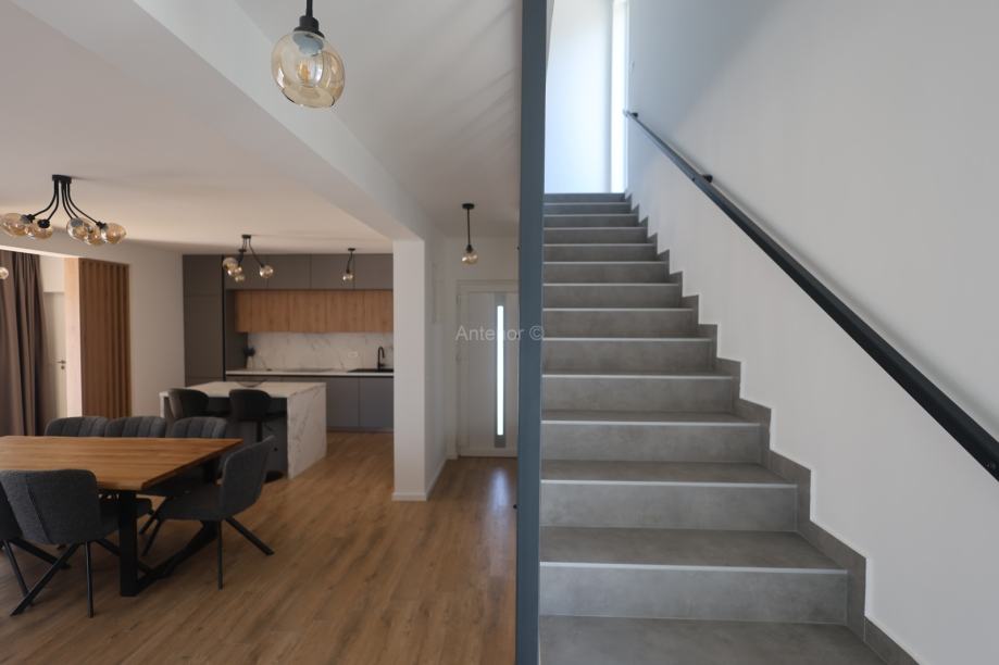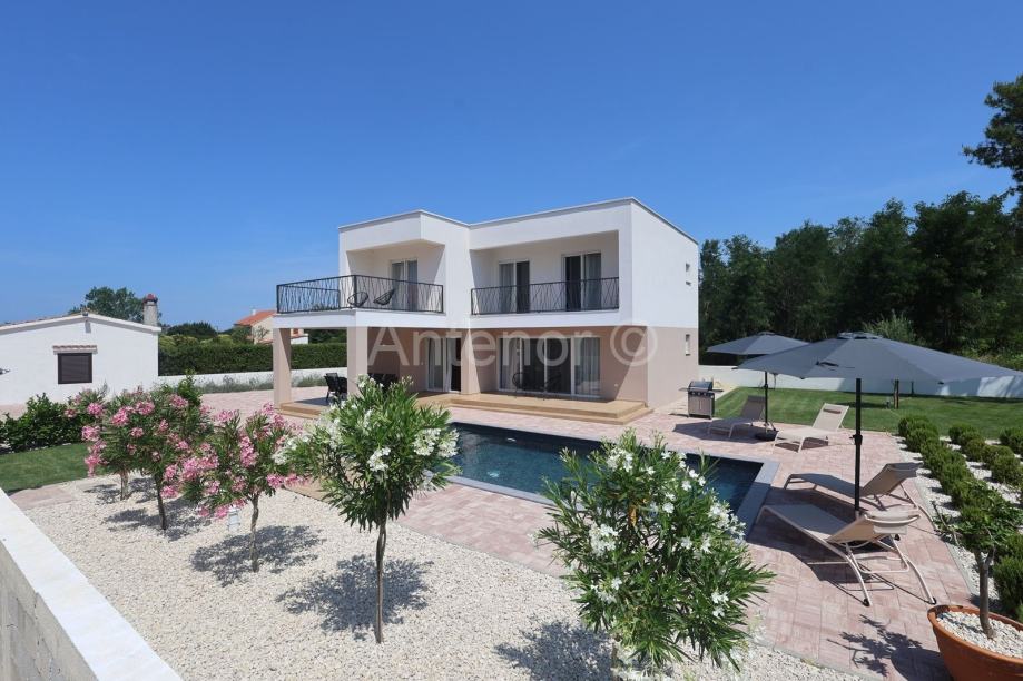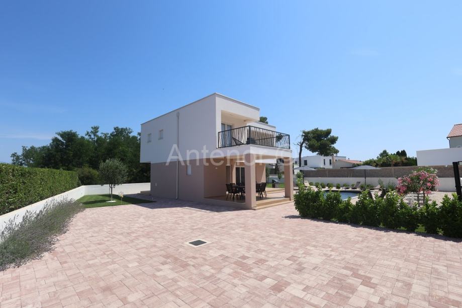 Vila se sastoji se od prizemlja i kata. Prizemlje se sastoji od ulaza, hodnika, strojarnice, kupaonice, kuhinje i blagovaonice, dnevnog boravka iz kojeg se izlazi na prekrasnu natkrivenu terasu i dvorište u kojem se nalazi bazen. Unutarnjim stubištem dolazi se na kat gdje se nalaze 3 spavaće sobe, jedna sa vlastitom kupaonicom, hodnik, kupaonica i vešeraj. Isto tako na katu se nalaze dvije lođe.